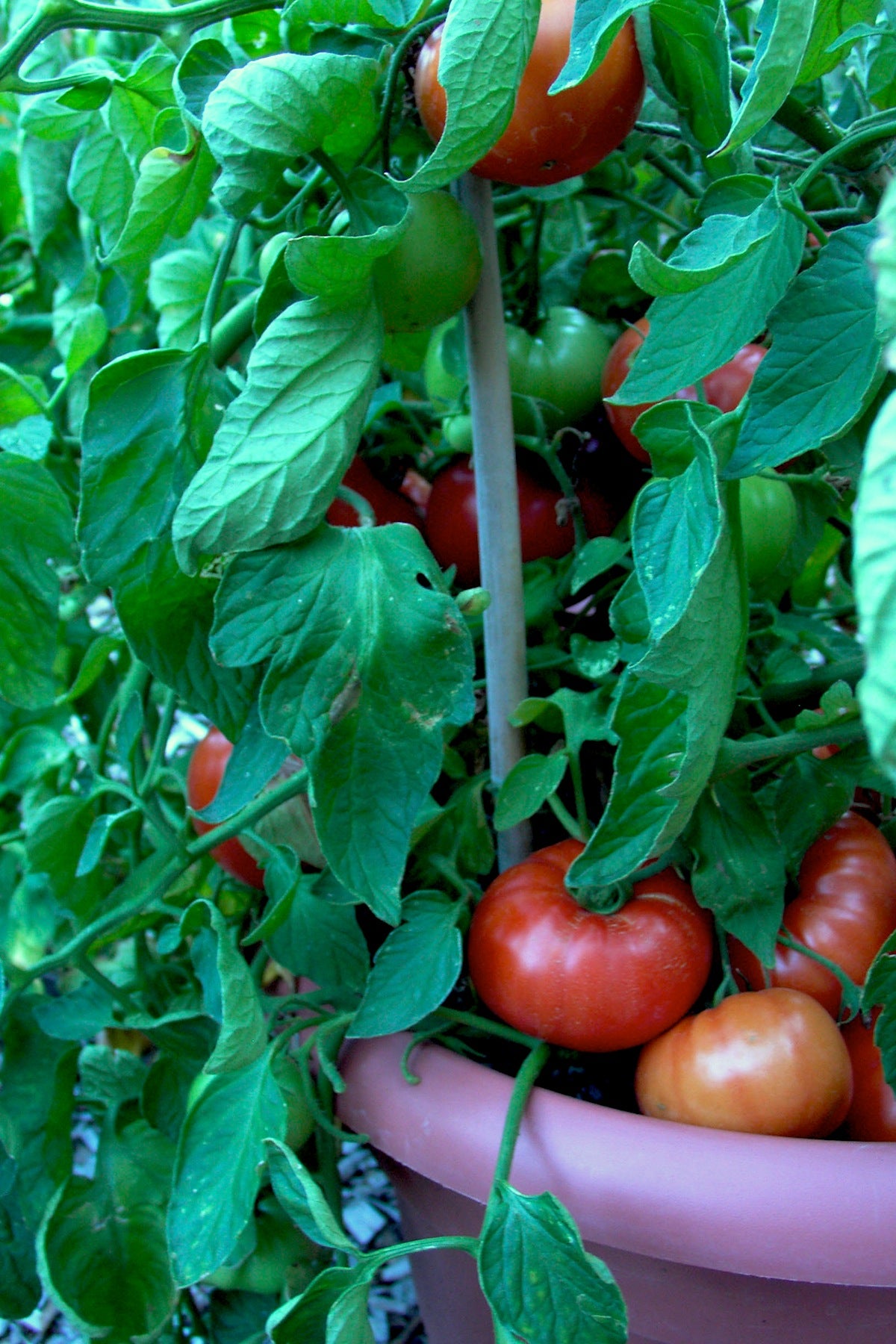 Tomatoes need full sun at least 6 hours every day. Provide strong stakes or wire cages at planting time as plants get heavy with fruit. Mulch plants well to maintain even moisture. Pick fully ripe. Don’t store tomatoes in the fridge.
