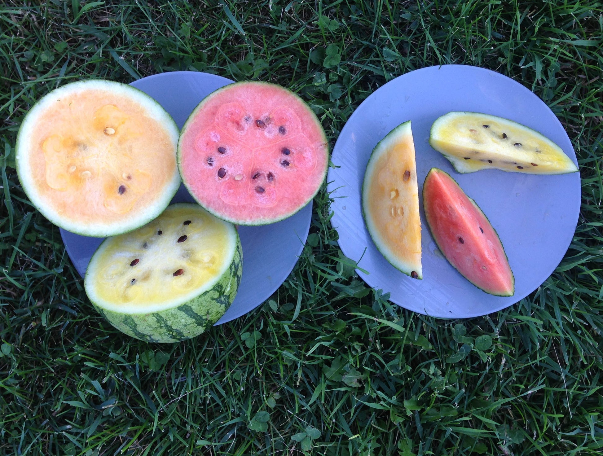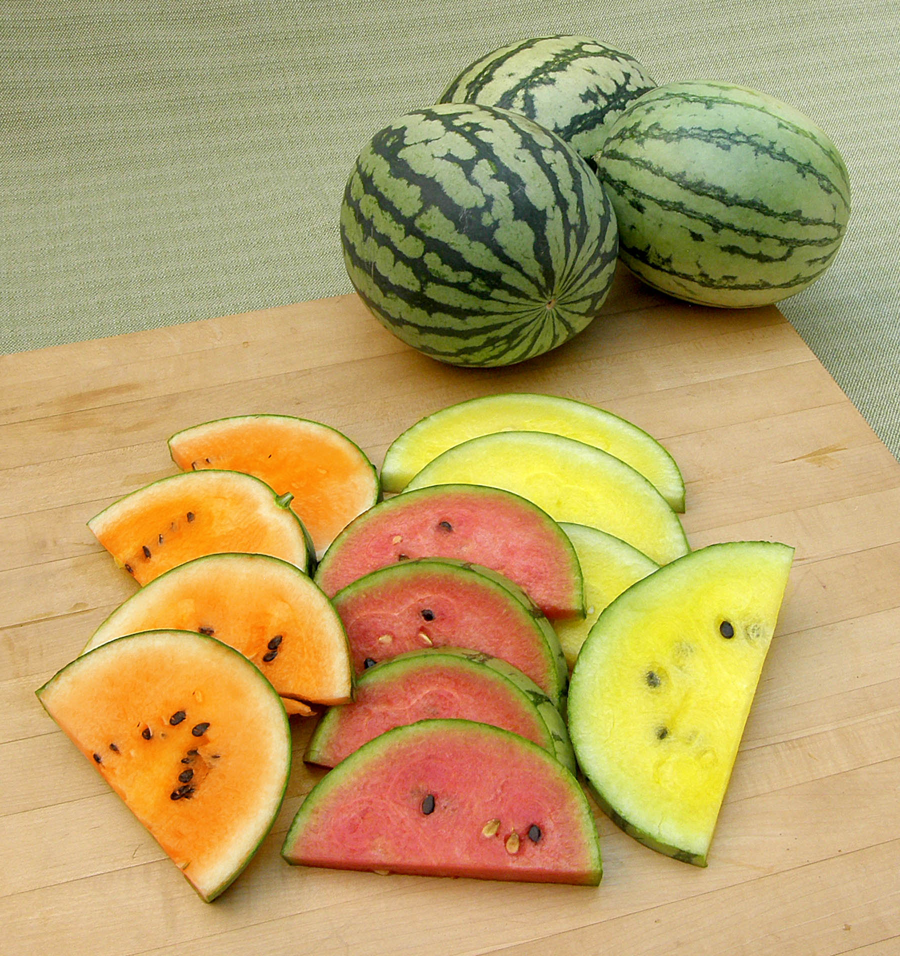 EXCLUSIVE - Grow three varieties of early maturing “icebox” watermelons with delicious pastel yellow, orange or pink flesh. These extra fancy beauties weigh in at only 4 to 7 pounds with thin, green striped rinds and dense, crisp flesh. Their party colors and refreshing sweet, sherbet-like taste make them wonderful everyday treats or gorgeous summer desserts.