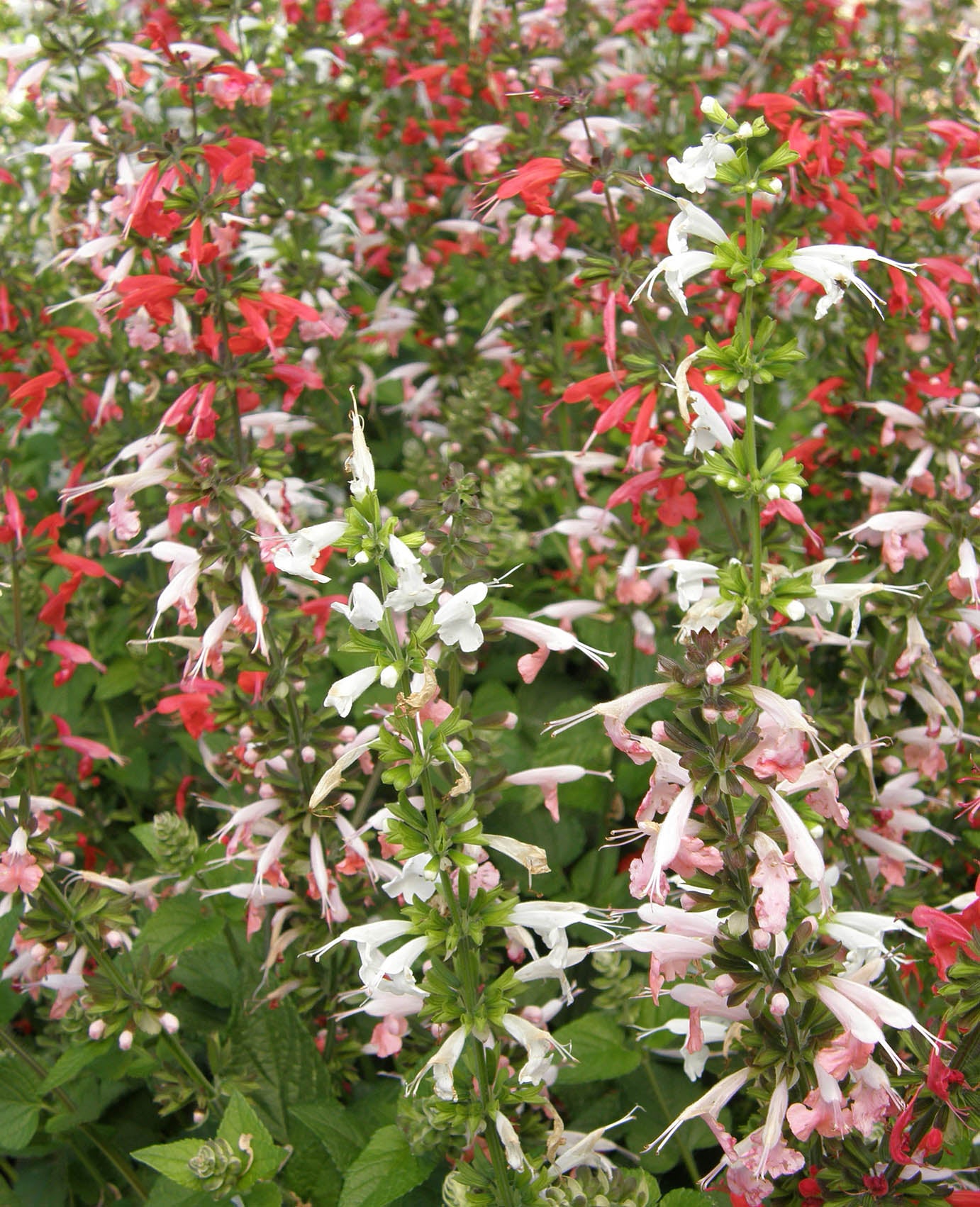 EXCLUSIVE – Our new variety is compact and earlier blooming than other salvias, with clouds of nectar-rich, blossoms in a mix of white, soft pink and rose-red. Hummingbirds, butterflies and other pollinators flock to these blossoms from dawn to dusk, and sprays of these charming flowers are lovely in mixed bouquets. Bee Heaven grows readily in a wide range of conditions and blooms continuously throughout summer. Ideal for containers or as easy-care, free-flowering border plants.