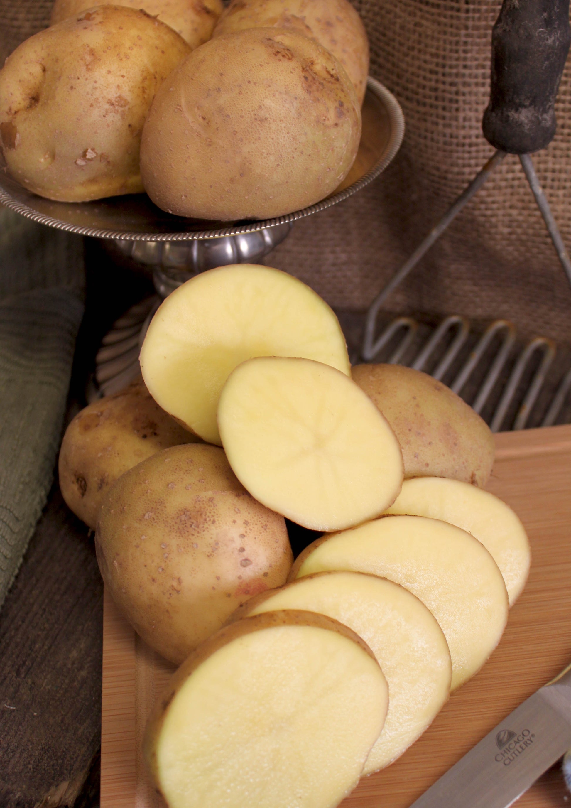 If you love yellow potatoes, you should certainly plant this fine selection bred from Yukon Gold and released in 2006. The round-oblong tubers mature about 10-12 days later than its famous parent with the same great flavor and delicious moist yellow flesh, but Yukon Gem offers more reliable and higher yields than Yukon Gold, as well as improved resistance to PVY, common scab, blight (early and late) and black spot.