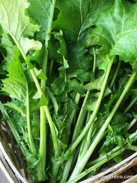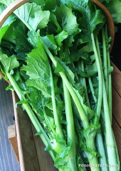Harvest both leaves and flowering stalks at 7 to 8 inches tall, when stalks are still tender and juicy with closed buds. After cutting, water plants and feed with fish emulsion solution to get a second harvest in a few weeks. Enjoy the hearty flavor of these vitamin-rich greens by briefly steaming or prepare traditionally by first blanching them quickly in boiling water and then sautéing them in olive oil with chopped garlic, just until tender.