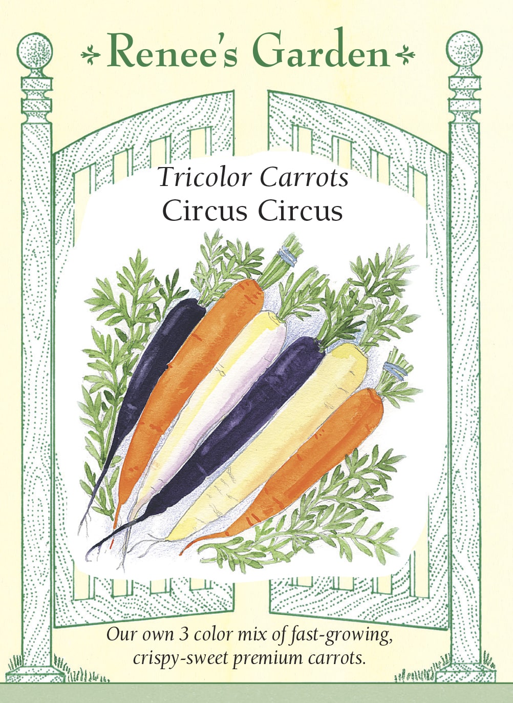 EXCLUSIVE – Our trio of colored carrots are creamy white, bright orange and a deep, dark purple with orange centers. All three are crisp, smooth and evenly cylindrical, growing to 8 inches long for a colorful harvest of festive roots. Their flavor is reliably sweet with a nice crunchy texture and you’ll enjoy this mix over a long season. Cut all three into carrot sticks or slice/shred into salads for a good tasting party of colors.