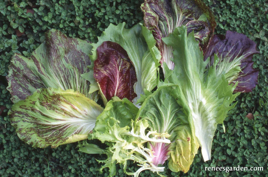 EXCLUSIVE - Expand your seasonal salad repertoire with the delicious textures and full flavors of these cold weather loving, cool season beauties. Mild and nutty French curly endive has finely-cut, delicate, lacy leaves with crispy ribs and creamy hearts. Luxuriant escarole produces satiny rosettes of crunchy outer leaves that fold closely around tender-sweet dense hearts. Toss them together with the tangy leaves of tart red radicchio and you’ll have wonderful continental-style salads of substance and character.