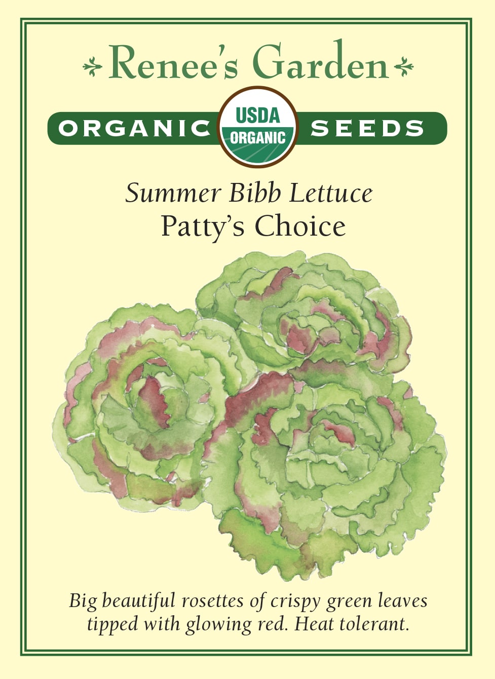 Big and beautiful bibb lettuce offers the fast-growing heavy rosettes of frilled crispy green leaves edged in radiant burgundy-red. Delicious for salads and lovely in the garden.