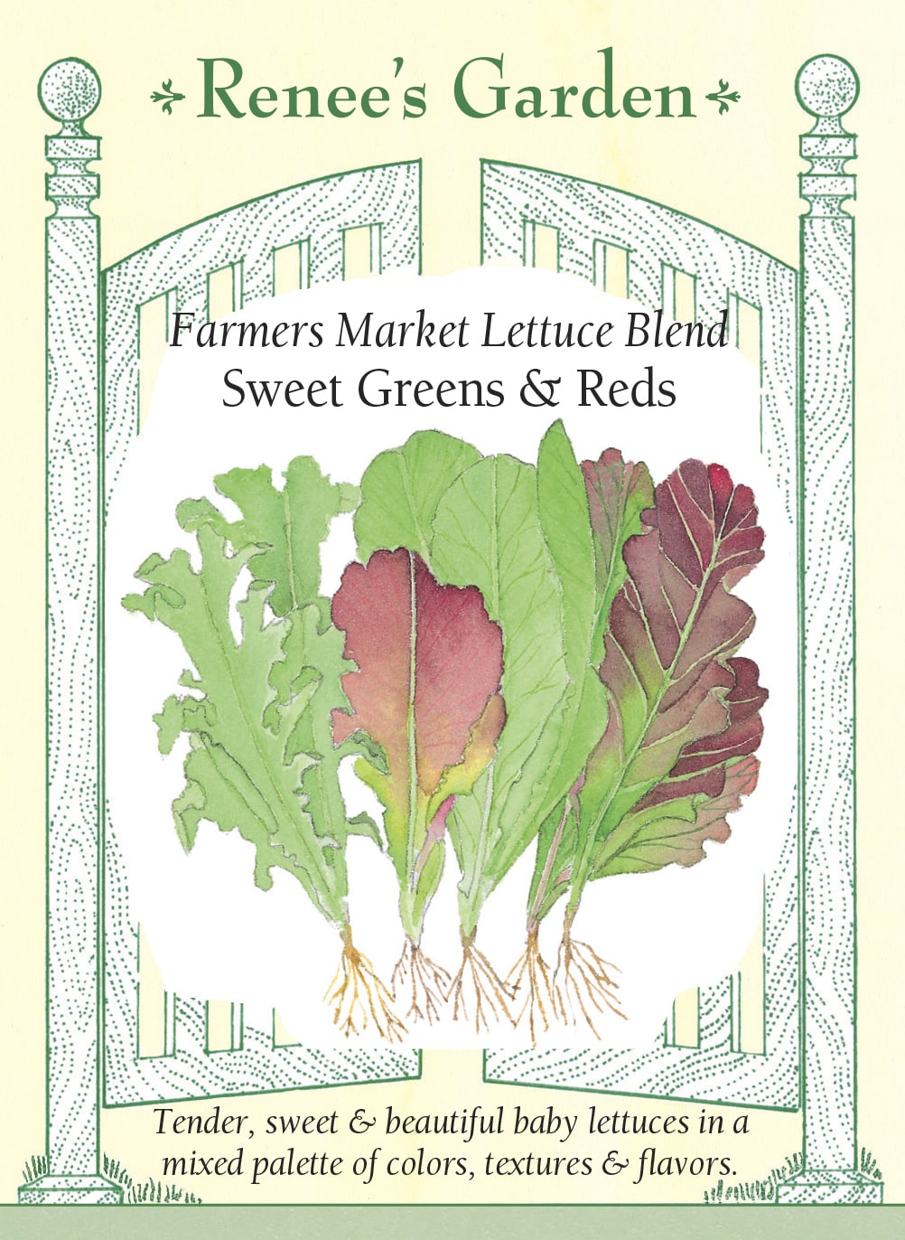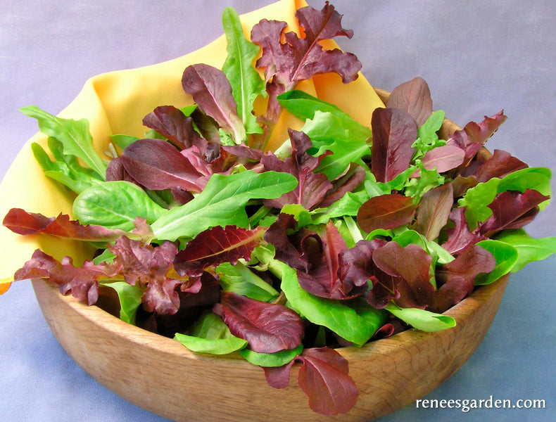 EXCLUSIVE - These tender, sweet and beautiful lettuces draw raves at our local farmers market where baskets of the young leaves tempt the eye and appetite. After careful evaluation, we’ve blended the most delicious varieties for a balanced palette of colors, shapes and textures. Includes frilly, lime-green Tango, upright green Little Gem, crimson and green Cimarron and burgundy Outredgeous. Cut young leaves often for scrumptious salads that are pretty as a picture in the garden and at the table.