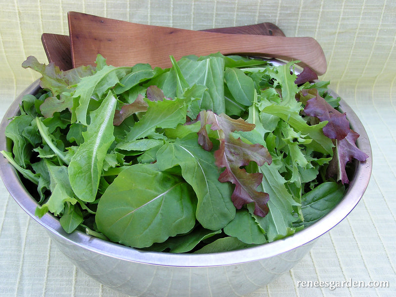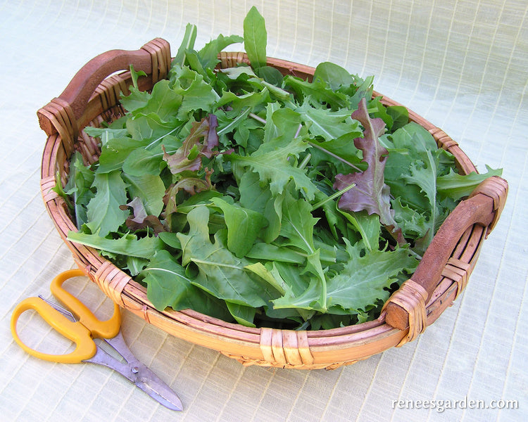 We fell in love with this delicious salad while hunting for varieties in Emilia-Romagna. The authentic regional mixture features a blend of tangy traditional cutting chicories and crispy little endives, nicely balanced by milder green and red leaf lettuces. Sow the seed densely, wait just over a month, then harvest with scissors at 4 to 5 inches tall to experience all the mouth-pleasing full flavors, textures and pretty colors that are so characteristic of rustic Italian cuisine.