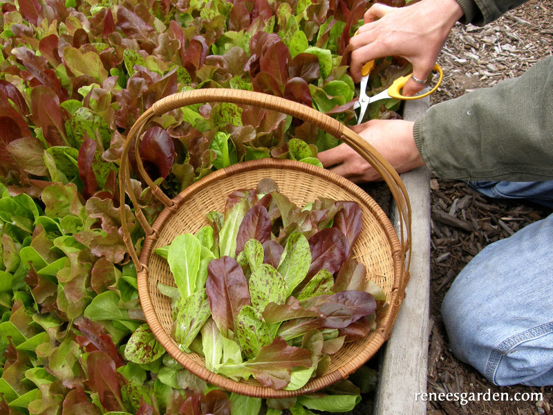 To harvest by the “cut and come again” method, wait until plants are 4 or 5 inches tall. Cut as much as you need, using scissors to shear off a patch of leaves 1 to 2 inches above the soil level. Water well and fertilize lightly and plants will regrow for several more cuttings. Dress with extra virgin olive oil and a mild fruit or balsamic vinegar to enjoy the sweet flavors and juicy textures of these delicate young leaves at their best.