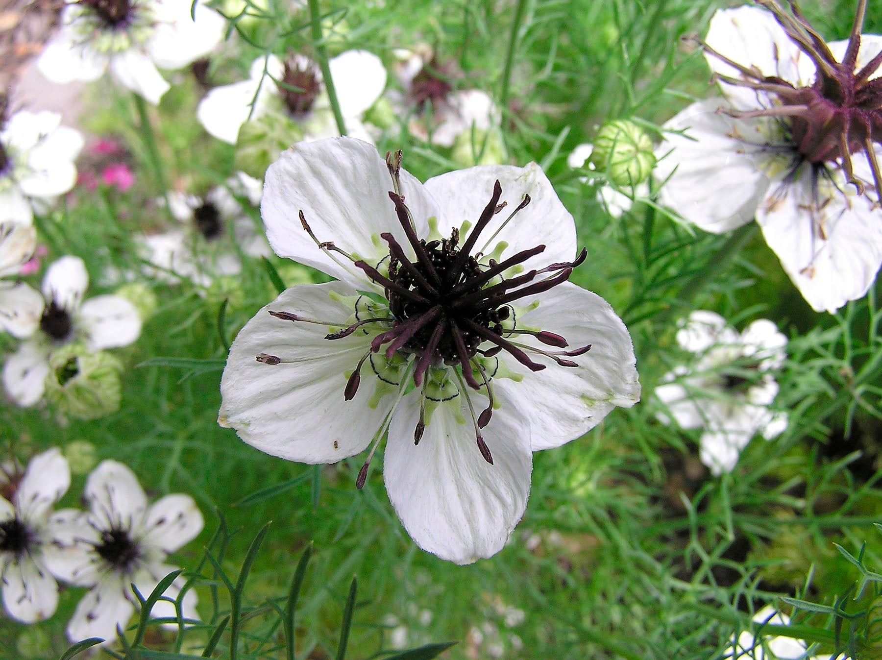 EXCLUSIVE - This hard-to-find nigella has multifaceted 2-inch blossoms with pure white petals and deeply contrasting, striking black centers. These enticing flowers float above ferny green foliage and make good cut flowers for indoor bouquets. When the plentiful white blossoms fade, they are followed by very decorative spidery seedpods that are simple to air dry for handsome everlasting dried flower arrangements. Reliable Nigella is carefree and easy to grow in all climates.
