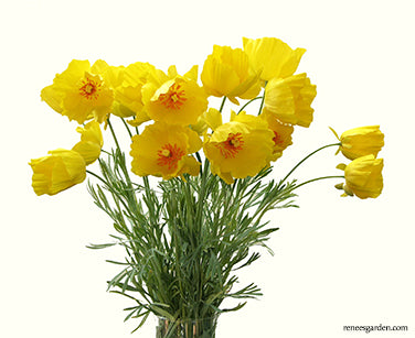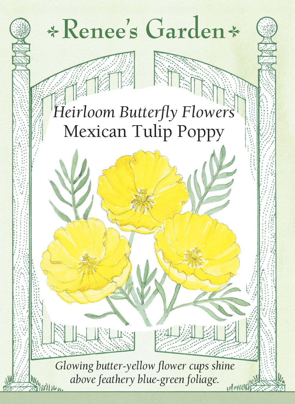 EXCLUSIVE – Also called Giant Golden Cups, this wonderful poppy-like heirloom offers delicate 3 inch flower cups that glisten in the sun and resemble satiny butter yellow tulips. Plants grow1 1/2 to 2 feet tall with finely cut, blue-green foliage. Flowers have straight stems and are perfect for long lasting fresh bouquets. Mexican Tulip Poppies are lovely planted in groups or drifts where their eye-catching silky yellow flowers provide pools of glowing color.