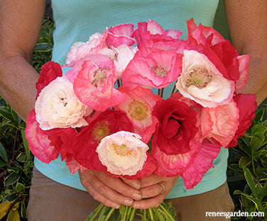 This joyful mixture of Shirley poppies is selected for its beautiful flowers in entrancing color combinations that light up the spring garden. It includes both single and double blossoms, many with contrasting picotee edges, in a glowing array of colors including crimson, rose-red, white and peach. The 2 to 3 foot tall nodding flowers will shine in your spring garden with satiny blossoms that sway gracefully above frothy foliage.