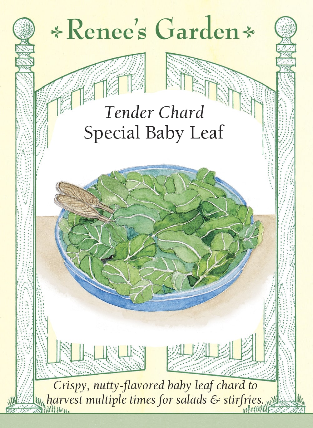 EXCLUSIVE – Our crispy, nutty-flavored Baby Leaf chard is the fastest growing and best tasting, whether you use it in salads or steam, stirfry or braise its handsome green leaves. Easily grown by the “cut and come again” method, seeds are sown thickly, then cut as needed at 4-5 inches tall, leaving crowns to regrow for multiple additional harvests. With its tender texture and milder flavor, baby leaf chard makes wonderful garden- fresh salads.