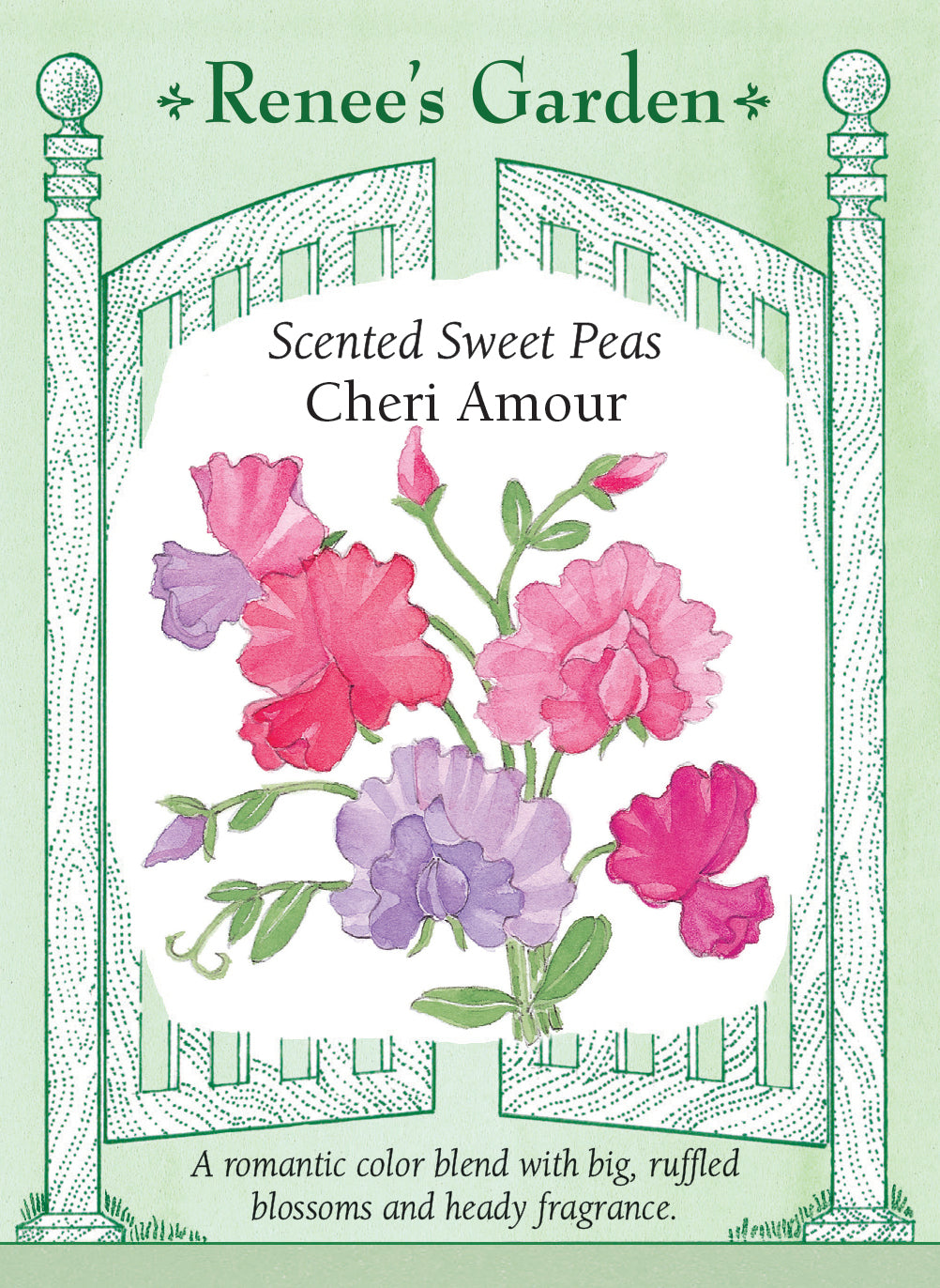 EXCLUSIVE – Expert sweet pea breeder Keith Hammett composed this romantic color palette of lovely flowers with ruffled wing petals. The carefully formulated blend includes salmon and pale pink bicolors, lavender with pink wings, deep lavender, rich rose and pastel pink. Cheri Amour’s long stemmed, fragrant blossoms, perfect to pick and arrange in naturally color-coordinated bouquets that will soften and perfume your home and heart.
