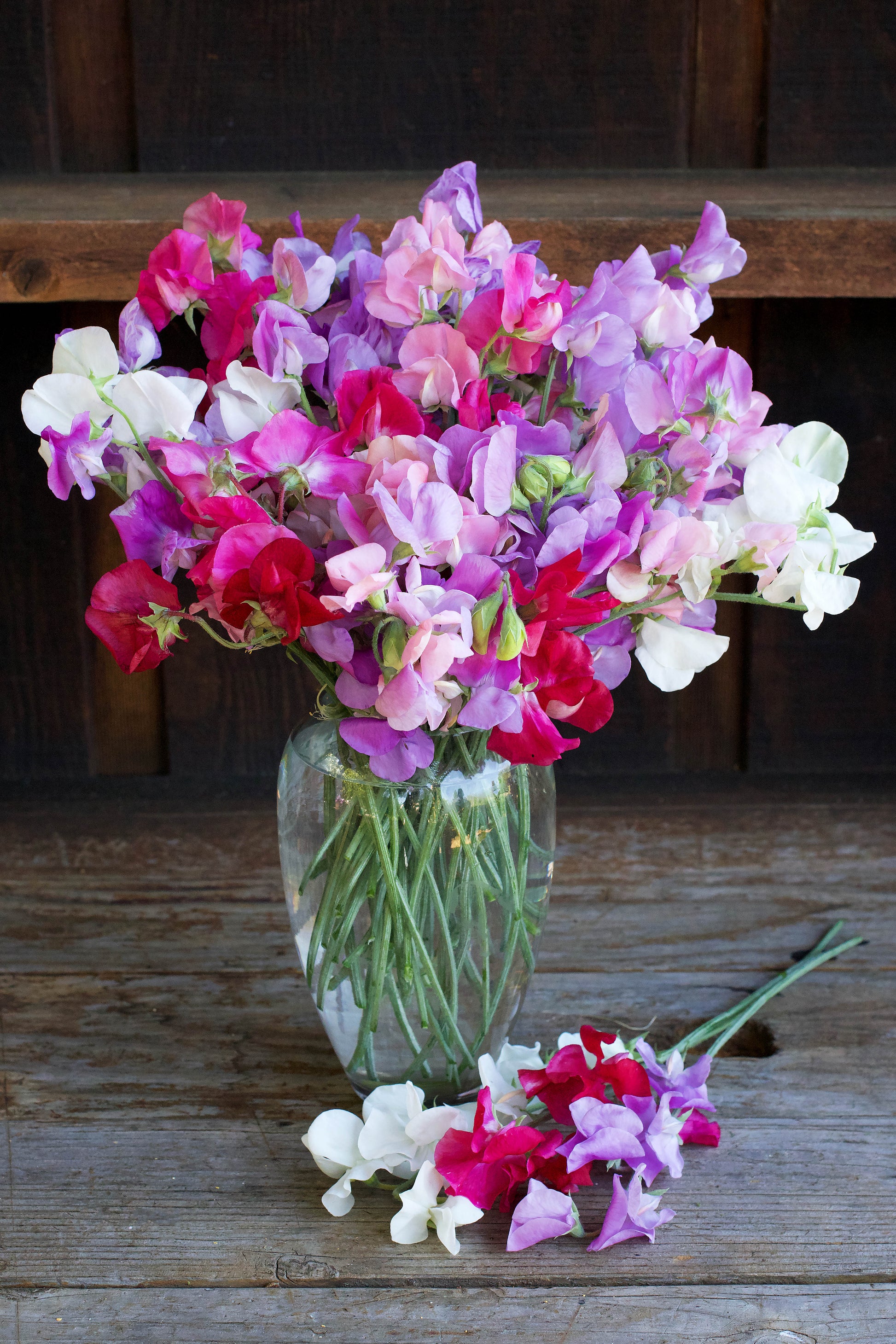 Sweet peas bloom best before the weather gets too hot, so if spring planting, sow as soon as ground can be worked. Where summer heat comes on fast, they’ll appreciate a spot with afternoon shade. Anchor supports well as vines will grow heavy with bloom. Protect seedlings from birds, slugs and snails. Mulch and keep well watered. For longest bloom, pick flowers often and keep faded blossoms cut.