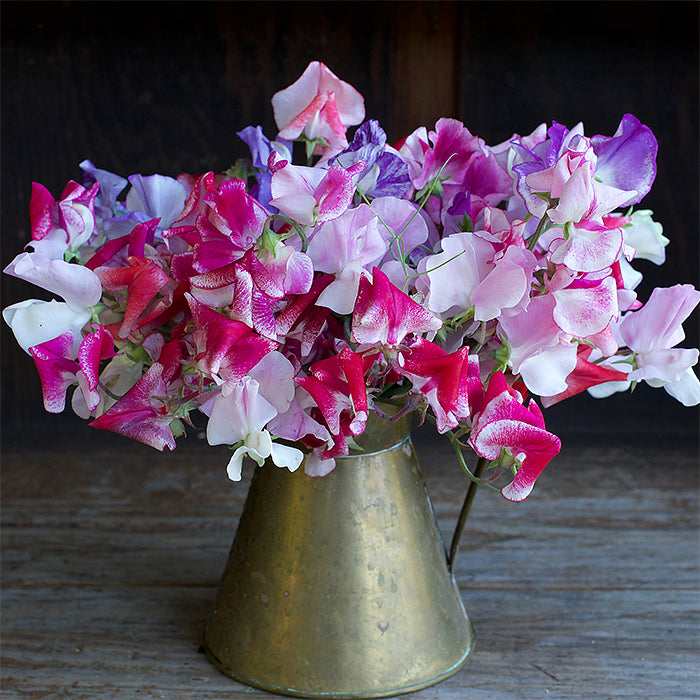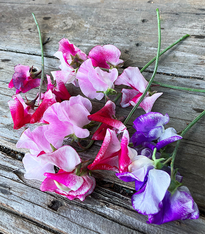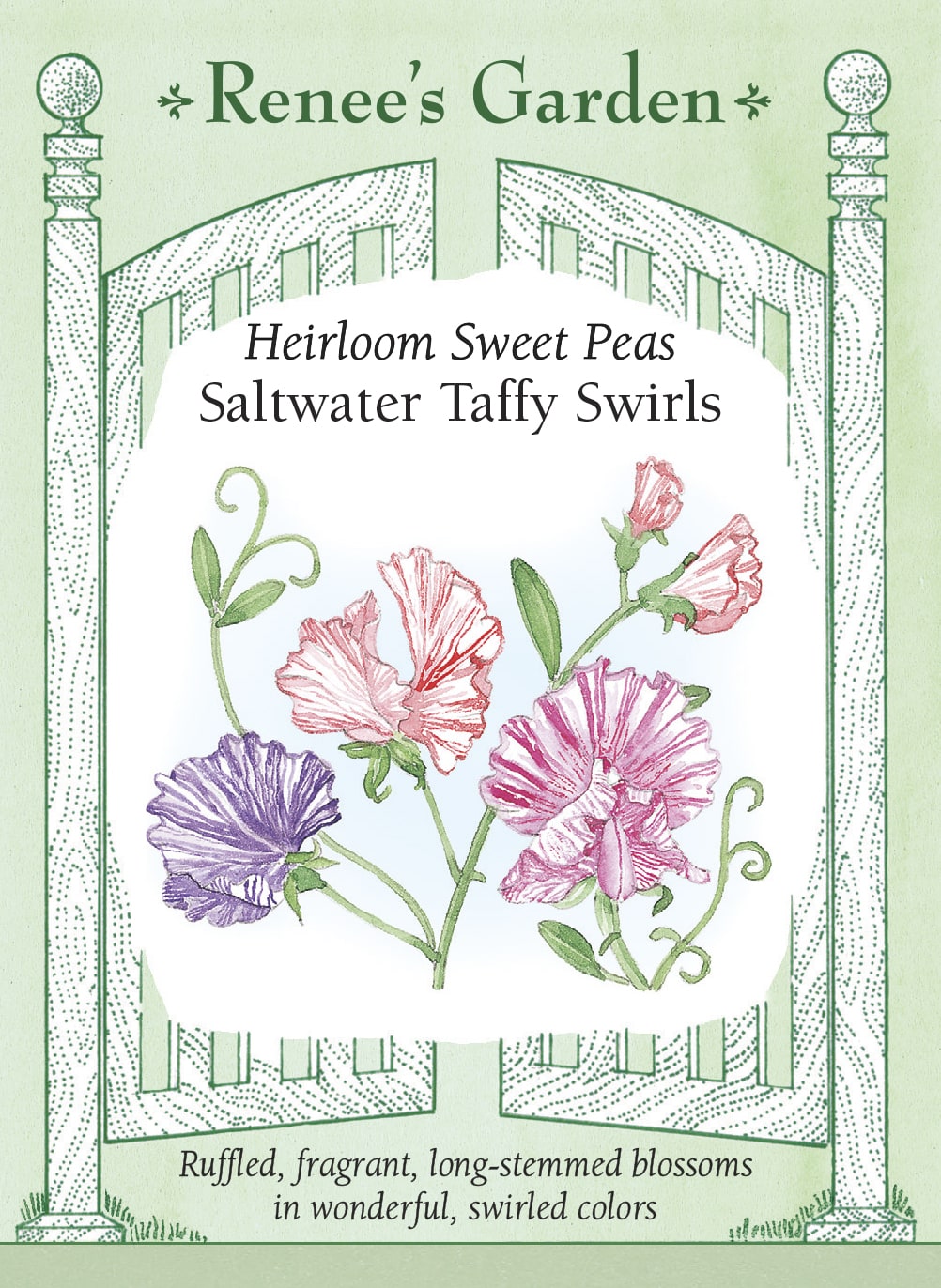 EXCLUSIVE - These charming and very fragrant flowers will delight old-fashioned sweet pea lovers with their unusual patterned blossoms. Saltwater Taffy’s lush flowers are uniquely “flaked” with rippled swirls of deeper color that glow against the pastel background of each petal. We’ve blended delectable color tints so you’ll have vines with soft pink, lilac, violet and rose-red swirled blossoms all from the same packet. These strong blooming, intricately marked flowers make their own bouquets!