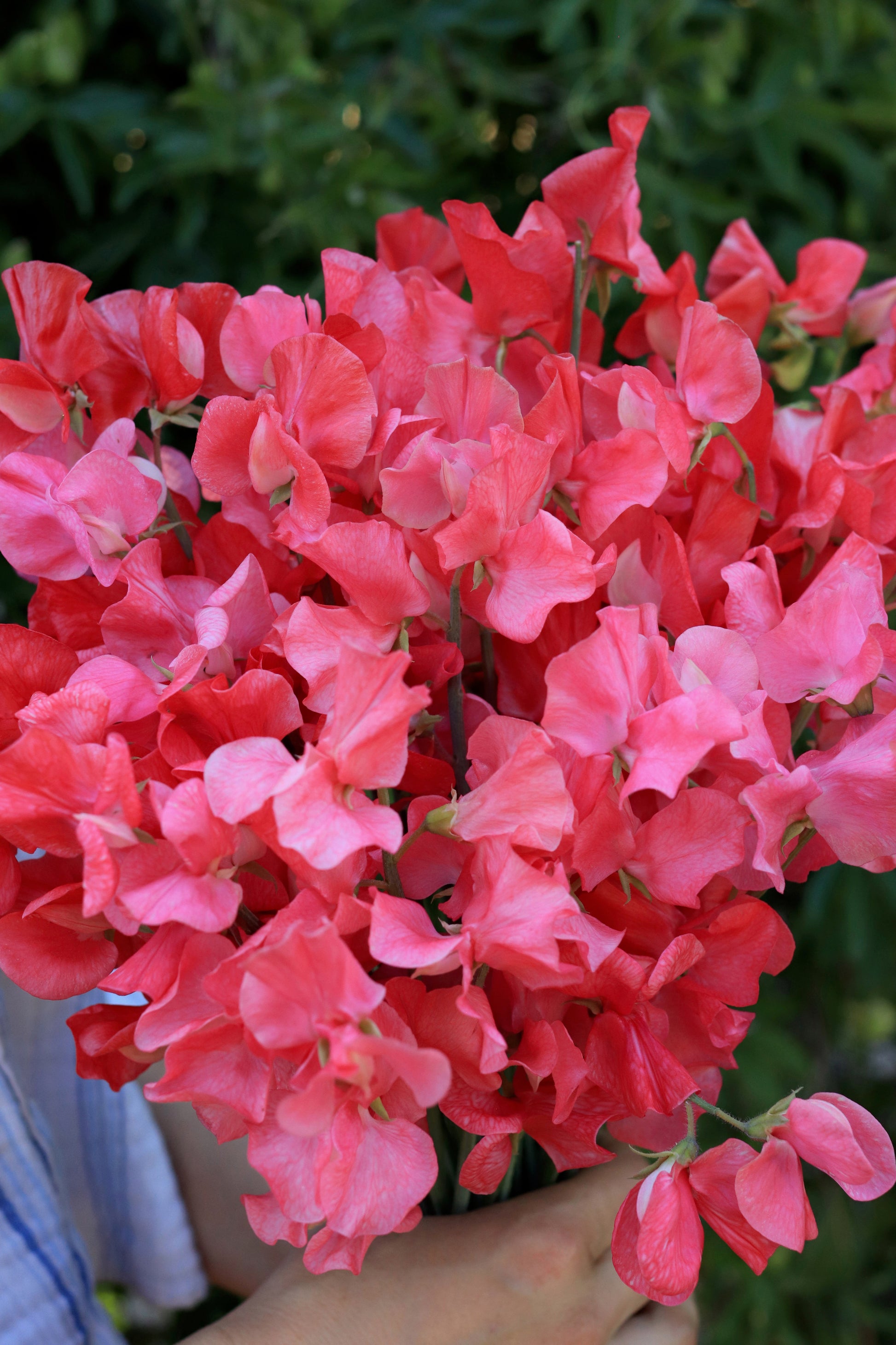 Sweet peas bloom best when they flower before the weather gets too hot, so if spring planting, sow as early as possible, especially in regions where summer heat comes on fast. Anchor climbing supports well as these vines will grow dense and heavy with bloom. Protect seedlings from birds, slugs and snails. Mulch and keep well watered for best flower production. For longest bloom, remove faded blossoms regularly.