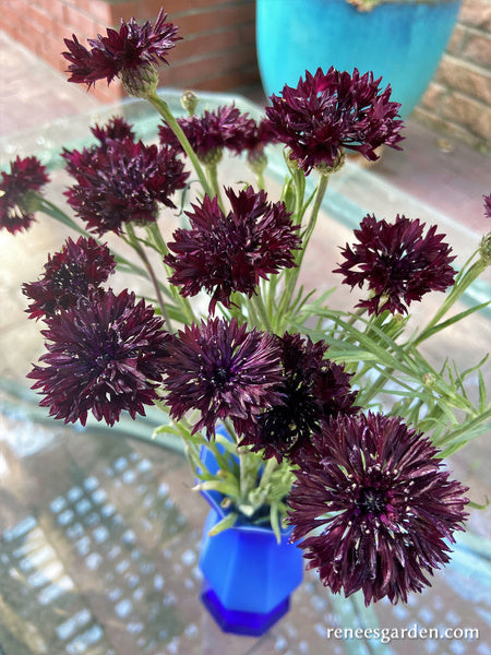 EXCLUSIVE – A classic cottage garden favorite in an enchanting shade of rich, deep purple. Velvet Dawn’s 1 1/2-inch dark, thistle-shaped flowers stand out against densely branching, blue-green foliage. They always attract and feed happy bees and butterflies. These are lovely, carefree, easy-to-grow, weather-tolerant flowers that will bloom vigorously and gladden your heart throughout spring and early summer. Cornflowers, also known as Bachelor Buttons, were traditionally used as lapel corsages!