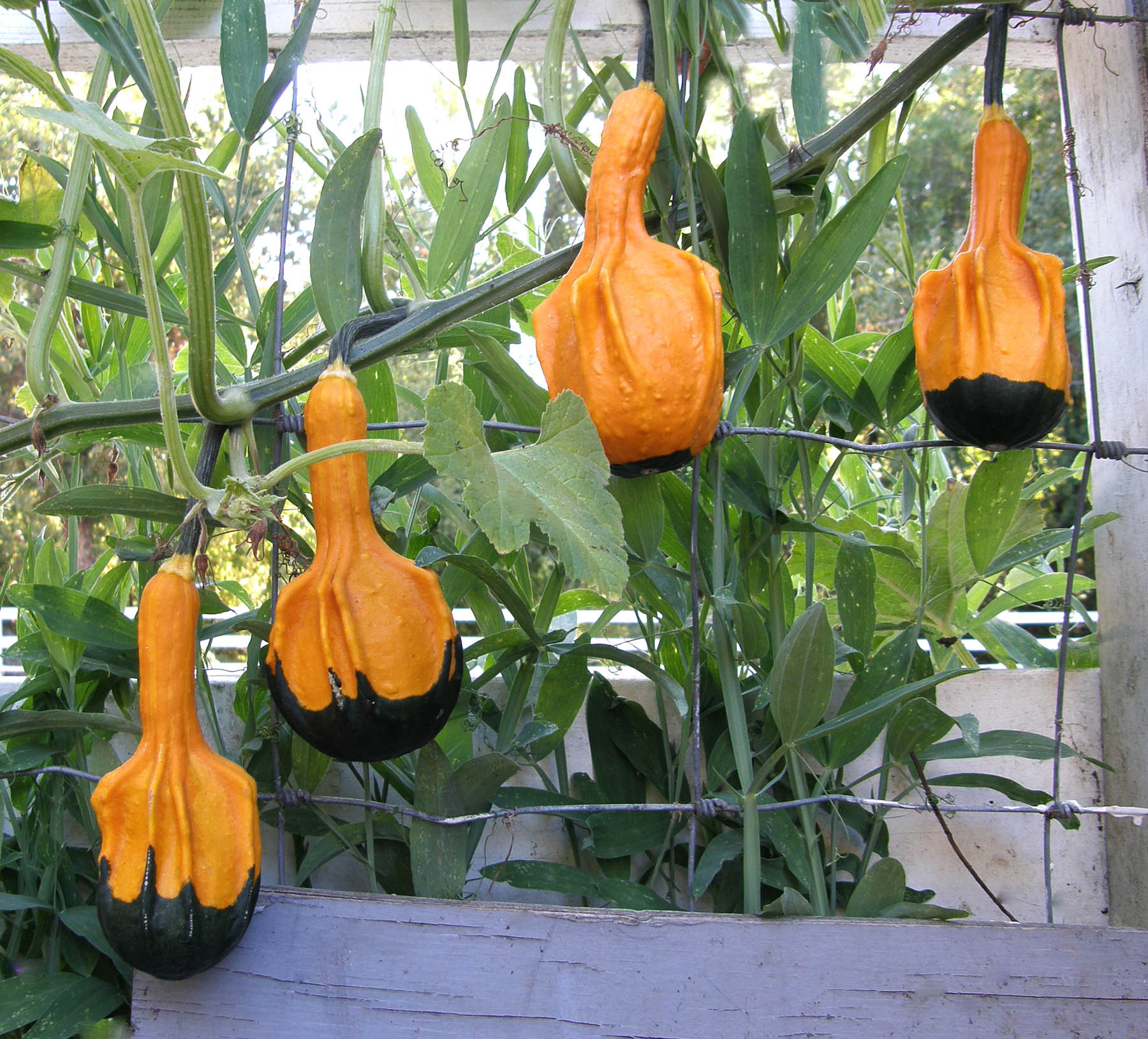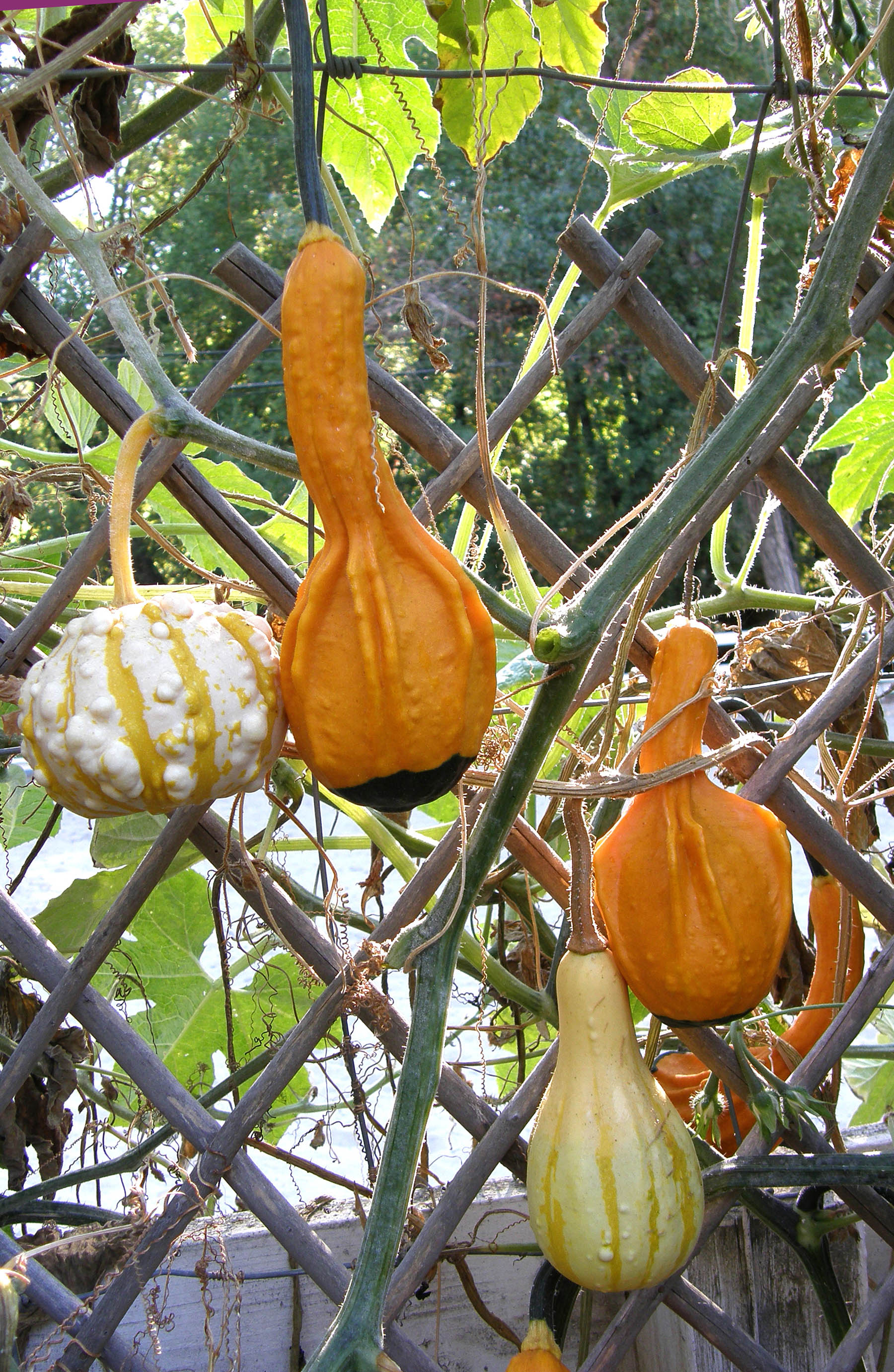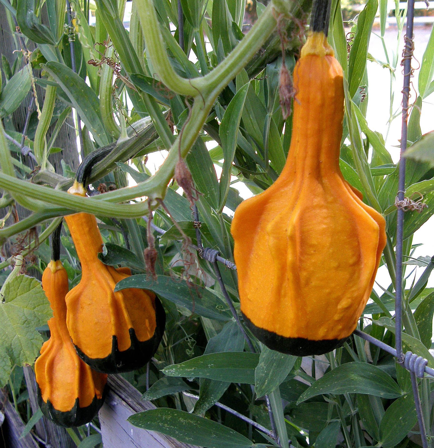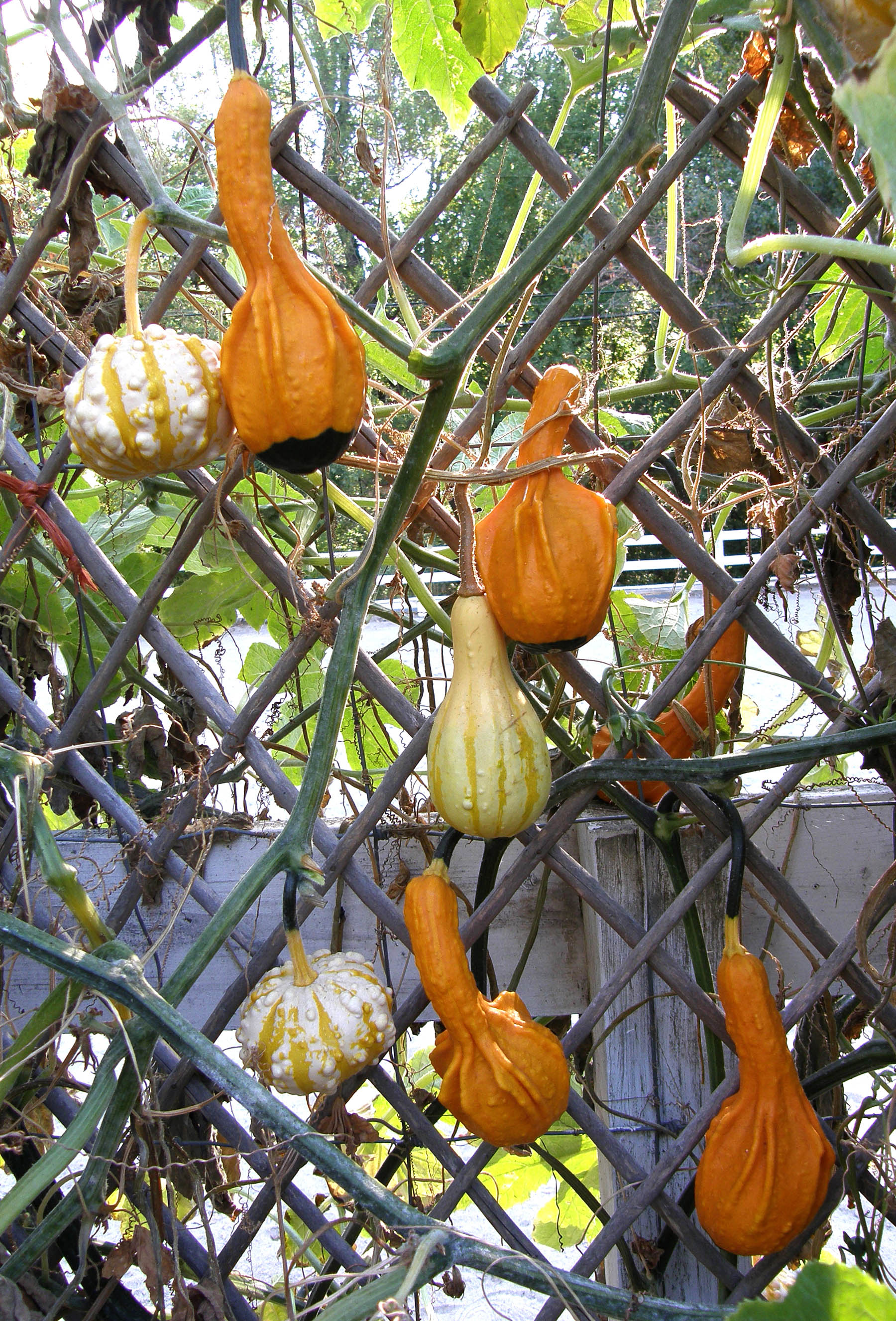 Gourds need full sun, very rich fertile soil and warm temperatures. For earliest and best yields, hand-pollinate gourds: break off a blooming male flower and dust pollen onto fresh female flowers (the ones with small fruits at the base). Repeat as new flowers appear. Pollinated fruits start growing larger within several days. Gourds are mature when the tendril next to the stem turns brown and rinds are tough. Harvest with several inches of stem. Dry in a well-ventilated place.
