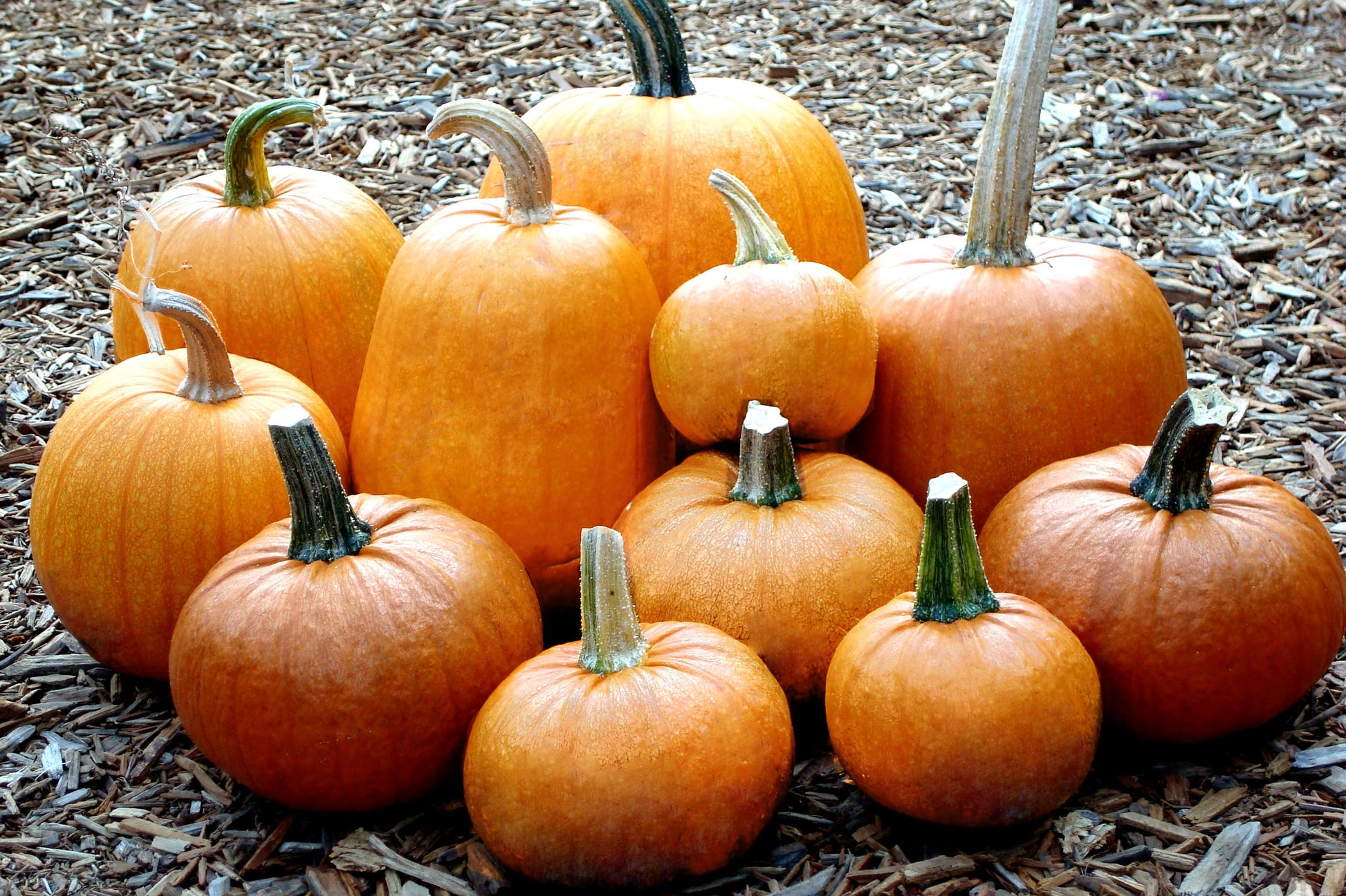 Pumpkins need full sun, rich fertile soil and warm temperatures. Wait to plant until temperatures stay above 50°F (10°C) day and night. Sow groups of 2 to 3 seeds 3 feet apart and 1 inch deep in rows 4 feet apart. Thin to 1 strong seedling per group to give vines room to spread. Or, make circular soil mounds 2 to 3 feet across and 8 ft. apart and plant 4 to 5 seeds in each hill. When seedlings have several sets of leaves, thin to 3 seedlings per hill. Protect young seedlings from marauding birds by covering with plastic berry baskets at sowing time, removing before young plants get crowded.