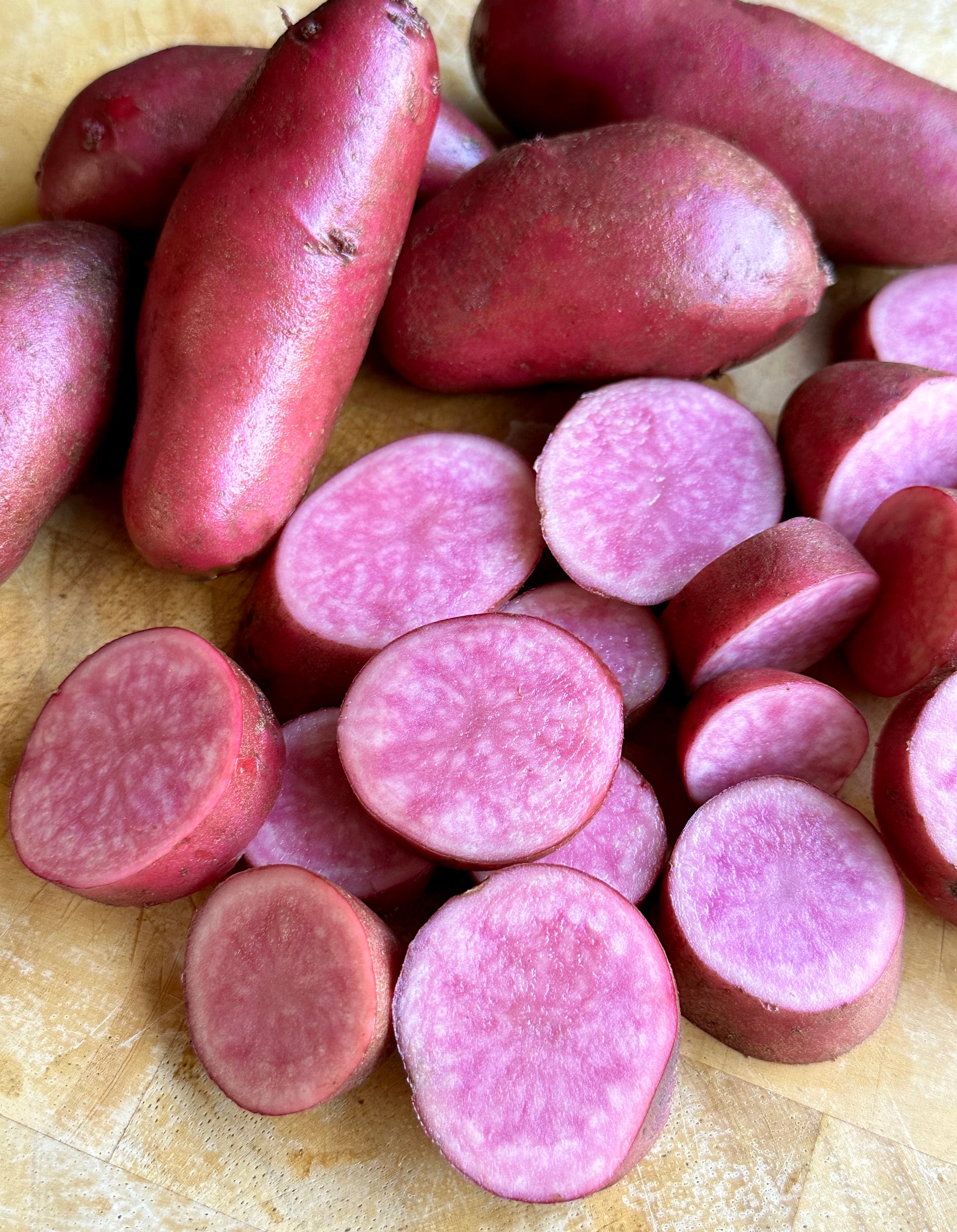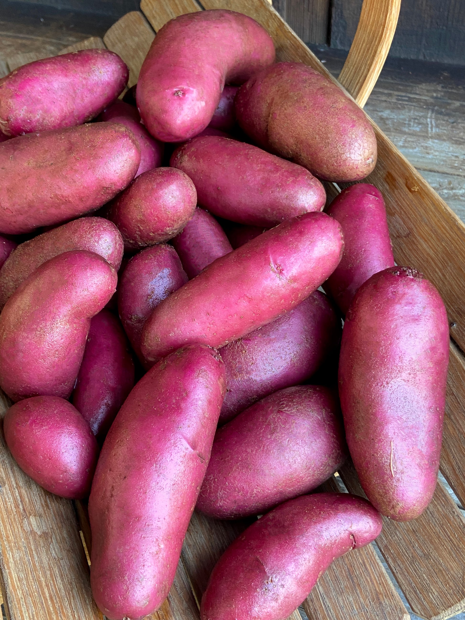 Because of their rich interior color, these slender oblong fingerlings are particularly high in antioxidants. Amarosa fingerlings have demonstrated good scab resistance, moderate keeping ability and produce well across different climate zones. Their firm texture, excellent flavor and vivid color – both inside and out – makes them a wonderful home garden choice. If you have an air fryer – think pink potato chips!