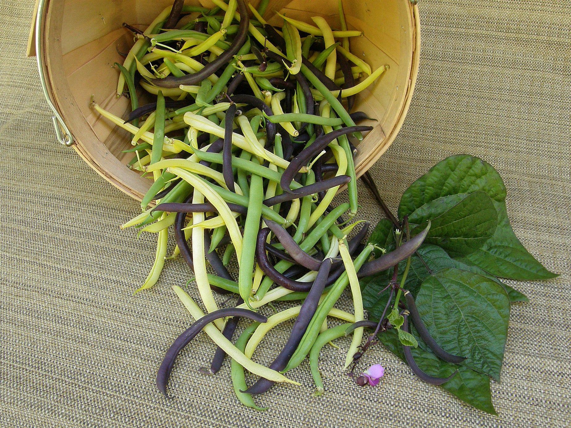 Equal parts: Blue Lake, Yellow Pole Wax, Purple Peacock
