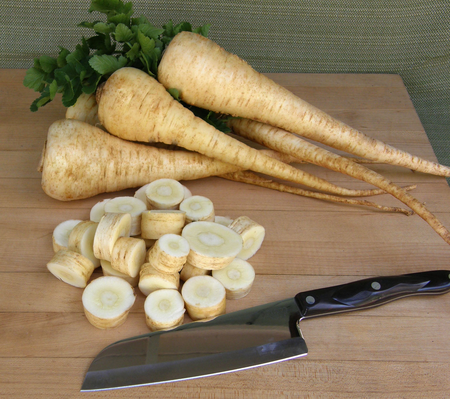 Wait to harvest until late fall cold weather; flavor is sweetest & best after several hard frosts. As you need them, dig out roots carefully with a shovel or spading fork. In cold winter climates, protect parsnips from freezing with a thick mulch. Parsnips are delicious peeled, cut in chunks, tossed with olive oil & roasted until tender by themselves or with other root vegetables. Or slice them up to sauté gently in butter or steam and mash.