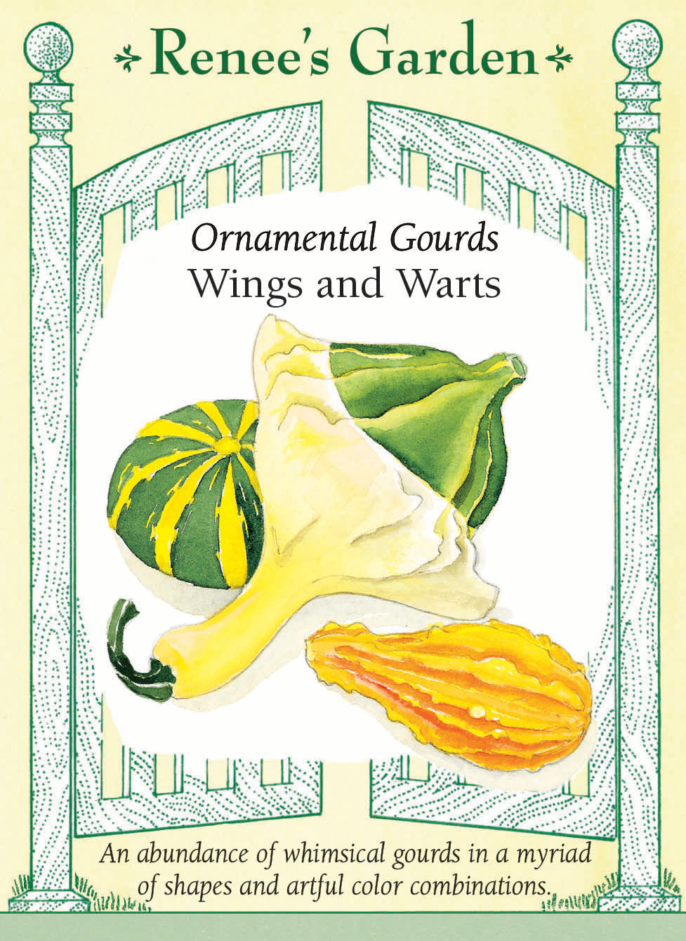 Our whimsical Wings and Warts gourds are fun and easy-to-grow from seed. The 5-6 inch gourds come either smooth-skinned with unique winged bulbs, or warted and shaped like spoons, pears or globes and come in artful combinations of harvest colors. You'll have an abundance of gourds in shades of orange, gold, buff, green and cream. Wings and Warts are perfect long-lasting decorations for Halloween and Thanksgiving. These quirky gourds are ideal for growing with kids of all ages.