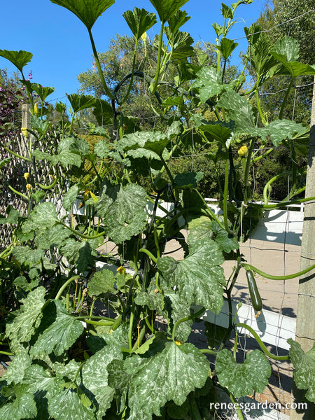 Squash needs full sun, rich fertile soil and warm temperatures. Plant only when spring weather is warm and settled and night temperatures stay above 55°F (13°C). Train these vigorous climbing vines up 6 to 8 foot stakes or a fence or trellis where they will make a lush leafy arbor or canopy and save garden space. Plant in full sun, sowing groups of 2 to 3 seeds 1 inch deep and 4 inches from vertical supports. Thin to the strongest seedling for each pole or to 12 inches apart along a fence.