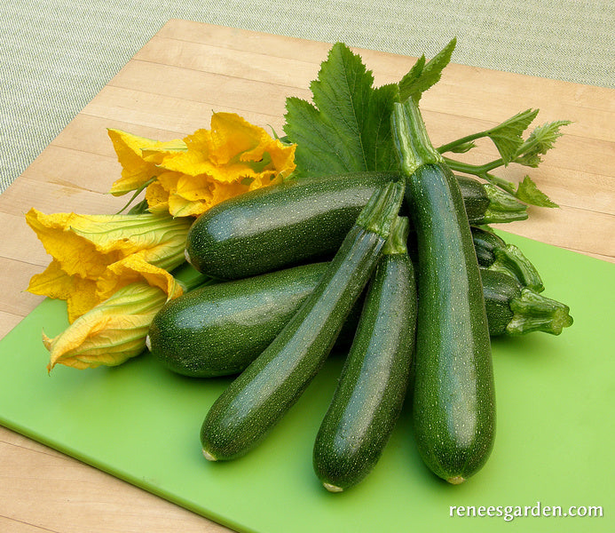 Harvest these luscious, rich green zucchini when no more than 5 to 6 inches long for top flavor and texture. Frequent harvesting keeps plants producing tasty new fruits.