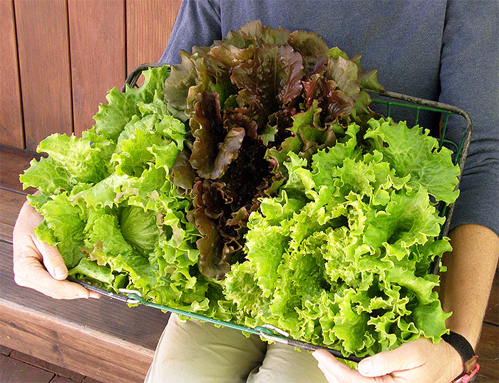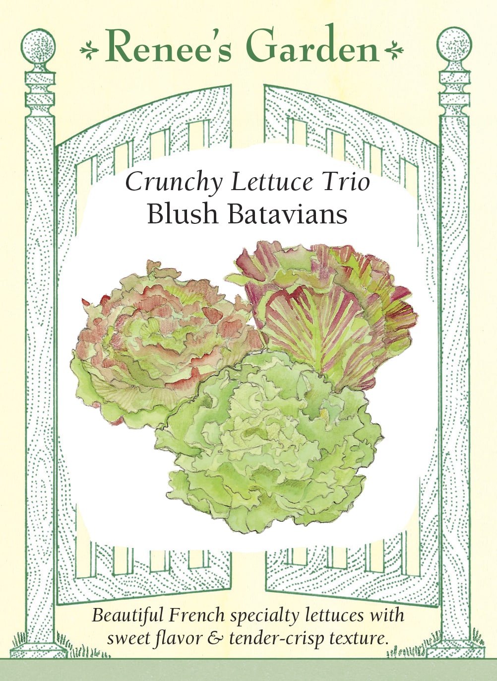 EXCLUSIVE - This special mix of three premium French Batavian lettuces combines sweet taste with tender but crispy texture and great garden performance in both hot and cold weather. The colorful trio contains intensely red "Chrystal," bright green, wavy-leaved “Soprane” and softly red-tinged “Rossia.” Bred especially for the fresh market, these heavy, beautiful rosettes of delicious leaves are perfect for luscious, satisfying salads, in sandwiches or wherever you want big crunchy leaves full of flavor.