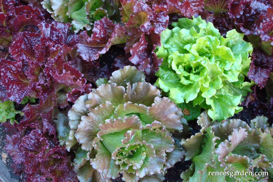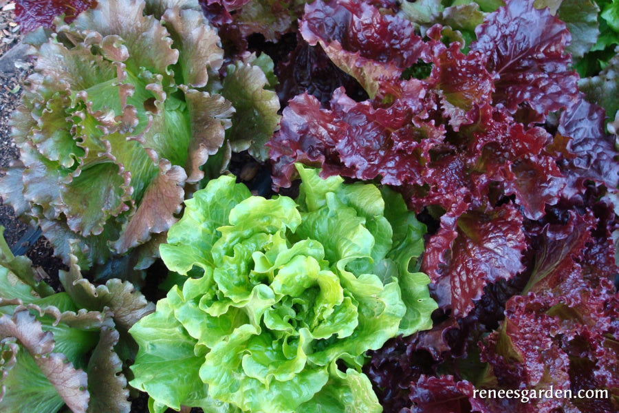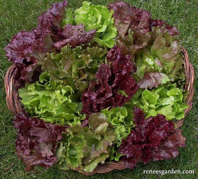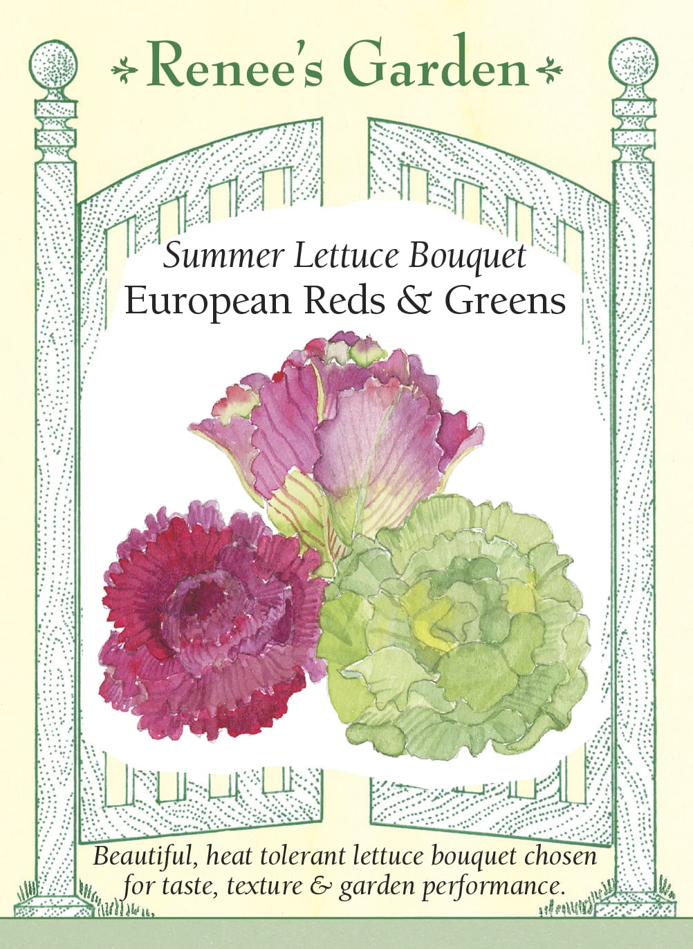 EXCLUSIVE - Our blend of new lettuces is selected for exceptional heat tolerance, striking ornamental beauty and wonderful flavor. Dutch Redina has loose-leaf rosettes with ruffled ruby leaves tapering to speckled green centers. Batavian Nevada’s broad heads of shiny rich green leaves are known for their sweet taste and juicy texture. Stunning French Cardinale has large vase shaped heads of crispy-sweet leaves with gorgeous burgundy edges and green hearts. Plant this summer bouquet to please your eye and palate.