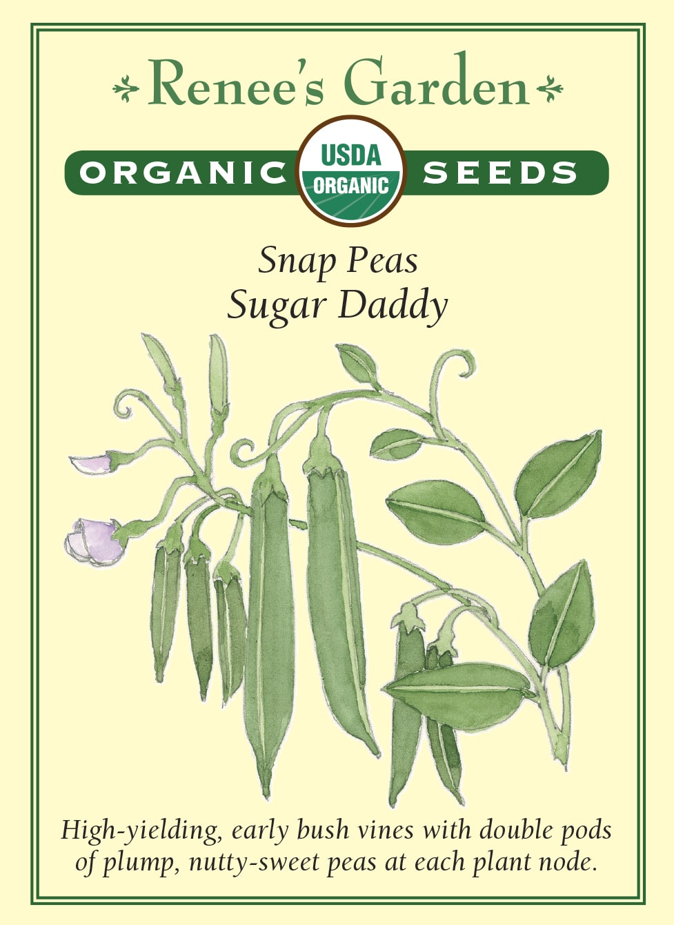 High yielding bush vines that load up early with double pods of plump, nutty-sweet peas at each plant node. Hard to resist eating right on the spot.