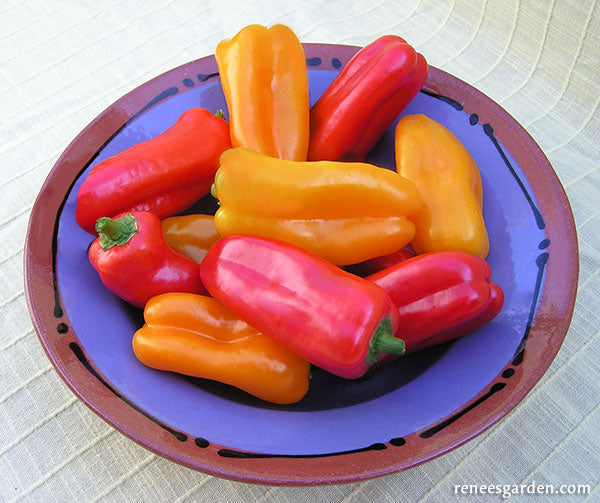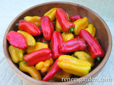 Baby Belle snack peppers have delicious sweet flavor and crisp texture. These bite-size little beauties make wonderful eating fresh off the plants or enjoy them as tasty, quick and nutritious snacks. They are the perfect size to quickly core and toss into fresh salads. The compact plants are heavy producers, and ornamental in the garden or containers.