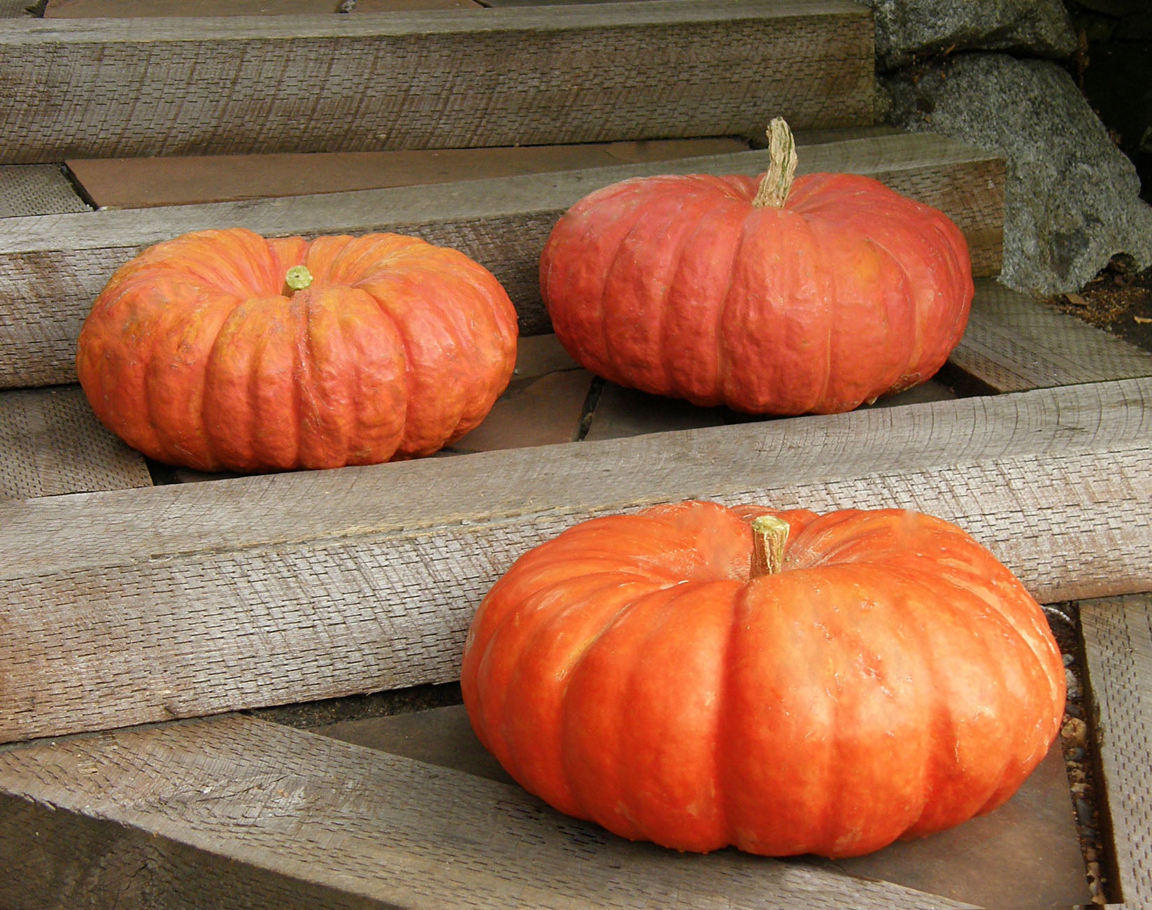 We import seed for this big gorgeous heirloom pumpkin from its original French breeder who maintains the best centuries-old strain, still beloved in European markets. Cinderella’s Carriage is our name for this large, thick fleshed selection that looks exactly like the original in old-fashioned illustrations of the magical fairy tale coach. The 18 to 35 pound, deep orange-red fruits are flattened and deeply lobed, and their vivid color glows among the lush vines as they ripen in celebration of fall.