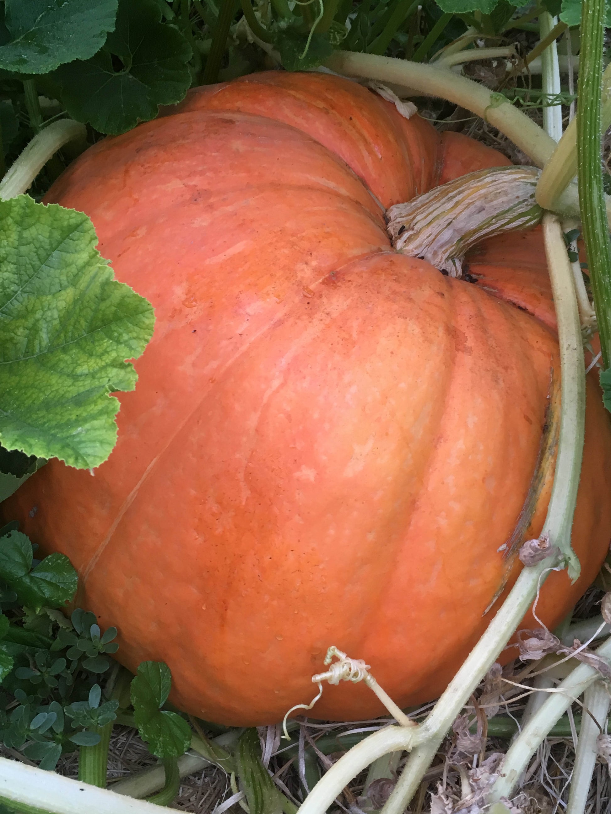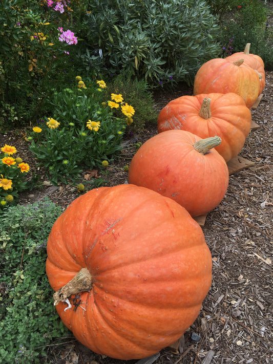 Plant where the vigorous vines can sprawl. Protect young seedlings from marauding birds by covering with berry baskets at sowing time, removing before plants get crowded. To concentrate energy into giant size pumpkins, pinch off all but one fruit on each vine at basketball size, so all the energy goes into that one pumpkin. Put a large square of plywood under growing pumpkins where they rest on soil to prevent rot. Feed regularly, about every three weeks, with a good all-purpose fertilizer and provide vines with ample water.