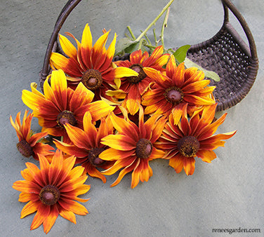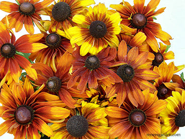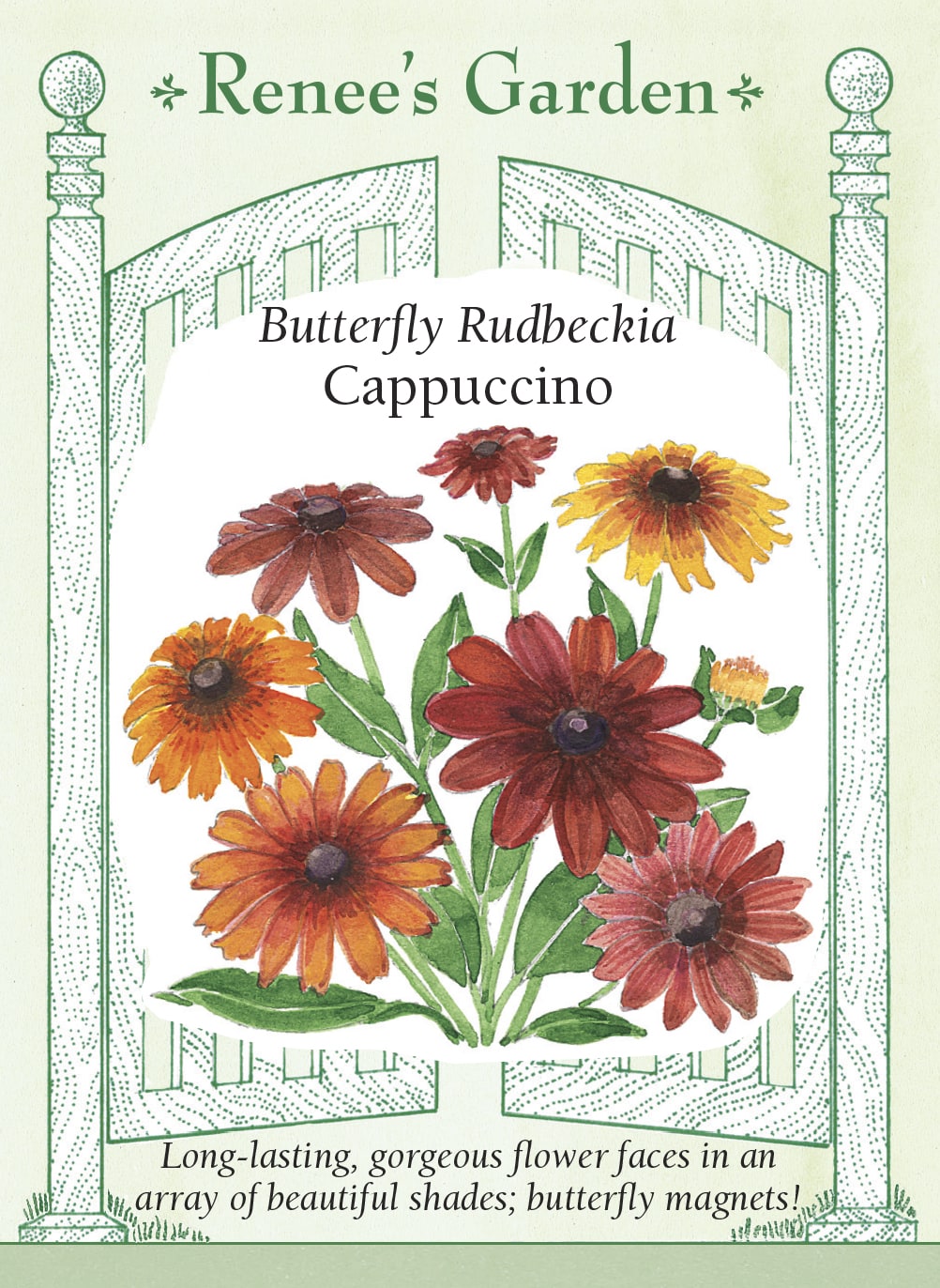Irresistible Cappuccino received the prestigious Fleuroselect award in Europe for beauty, productivity and top garden performance and we are proud to offer it here. These vigorous perennials produce gorgeous big flower faces in their first season with an array of beautiful bicolors in shades of red and yellow, warm mahogany, rich auburn and golden yellow. Sturdy and sun-loving, Cappuccino is both heat and drought tolerant. Butterflies adore the bright blossoms and they make long-lasting, festive cut flowers.