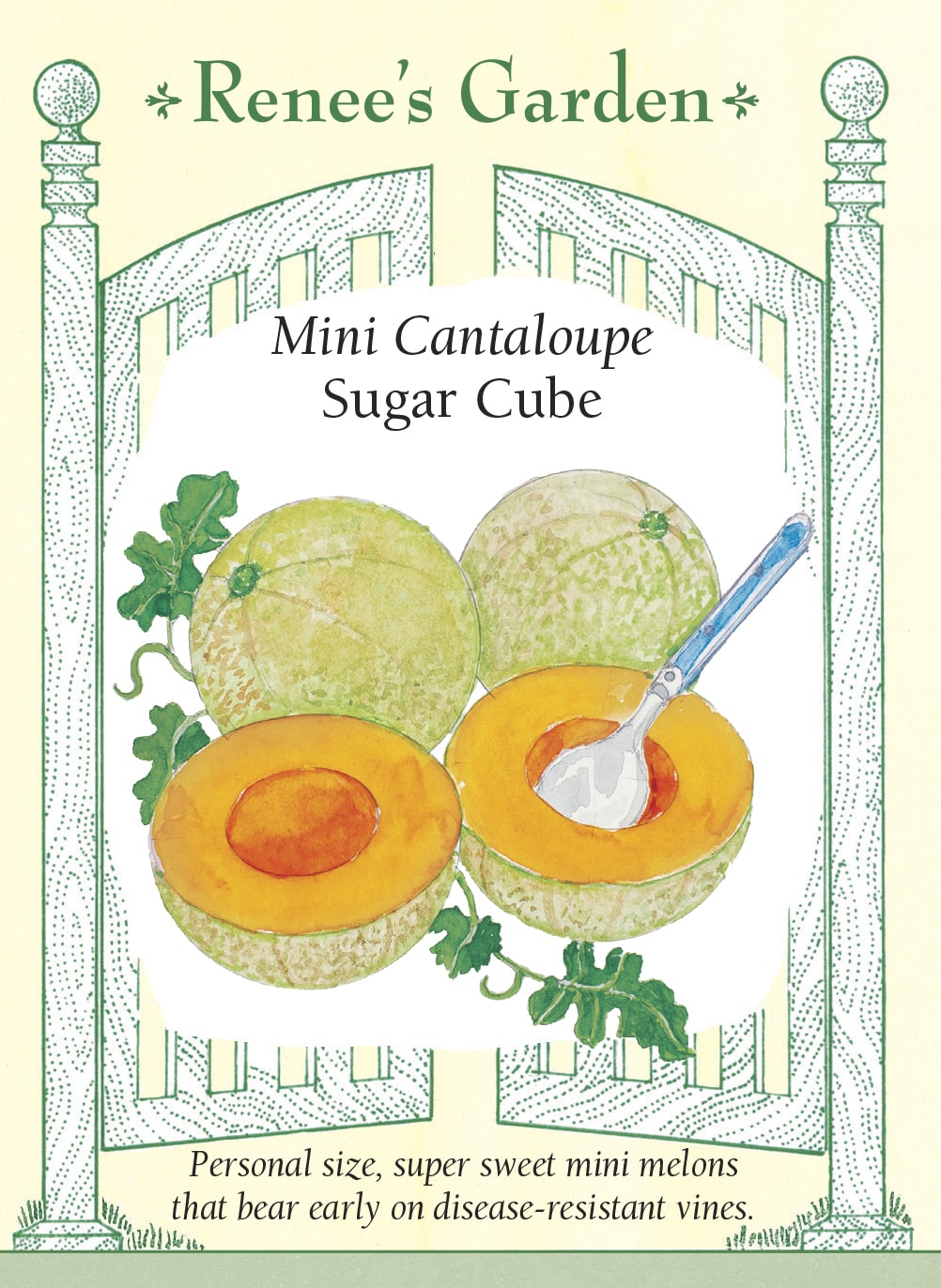 You’ll love these personal size, mini cantaloupes with intensely sweet, deep orange flesh that top out about the size of a small grapefruit. Sugar Cube cantaloupes are widely adapted, bear early, and produce abundantly over a long harvest season. The vigorous vines have exceptional disease resistance; this variety thrives where most melons struggle. Fruits make delicious individual snacks and scrumptious summer desserts.