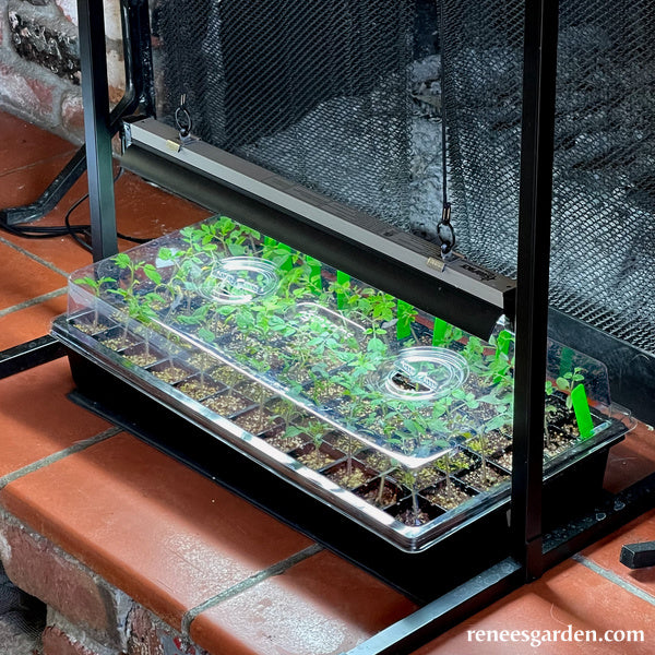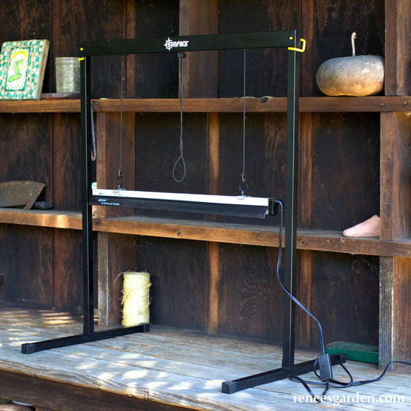 When you start seeds indoors, this sturdy and practical grow light unit is the best investment you can make to meet your seedlings’ critical requirements for long hours of intense light. You can keep this adjustable florescent light very close to the surface when seedlings are just germinating to provide both light and heat, and then easily move it up as they grow taller and fuller. Seedlings really thrive with this constant light bath and will mature into the stocky, healthy, deep-green transplants that succeed best in the garden.
