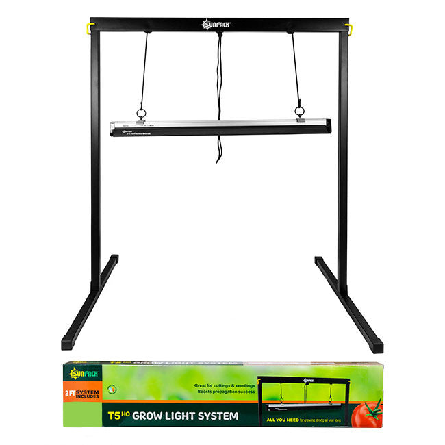 The easy to assemble 2-foot tall stand includes its own high-output, full-spectrum T5 fluorescent bulb with integrated reflector and has a 6 foot power cable with an on/off switch and toggle cord for easy lamp height adjustment.