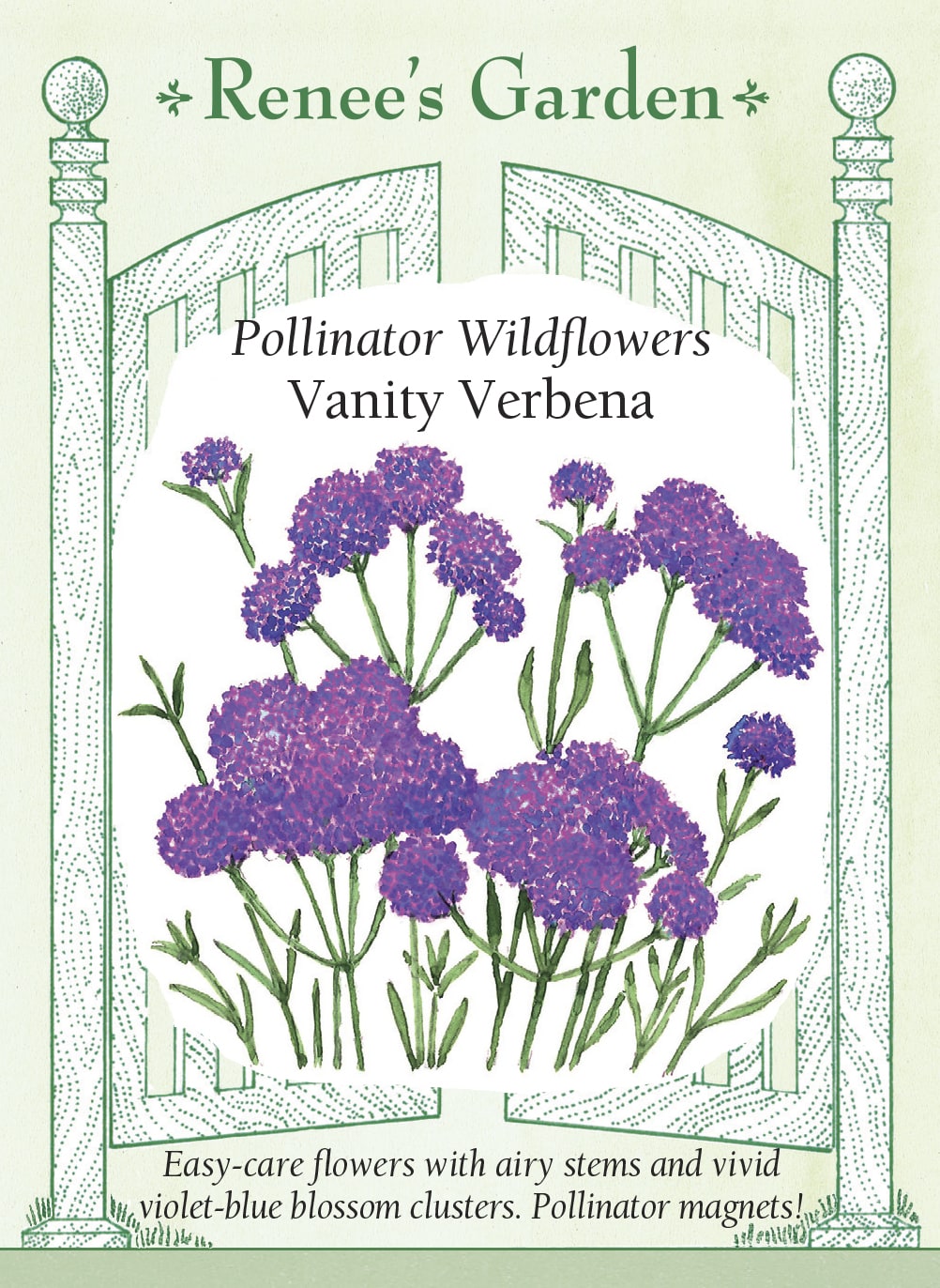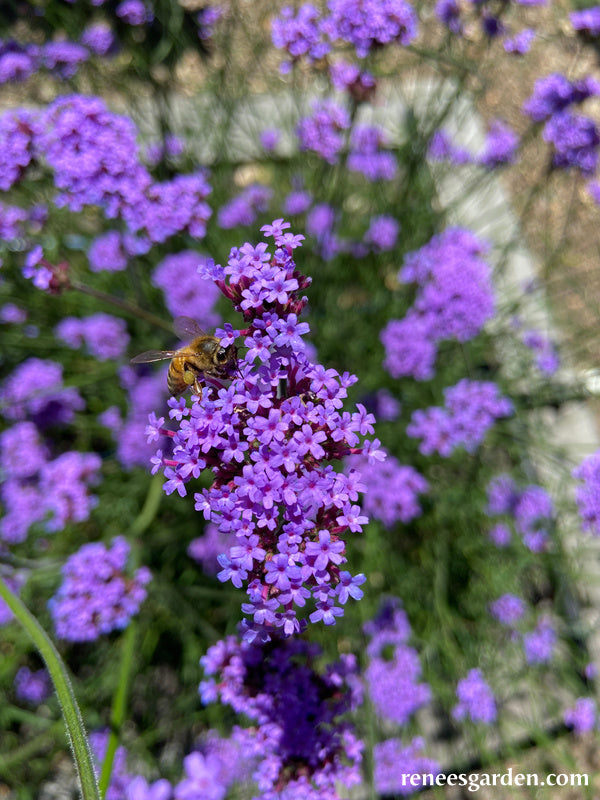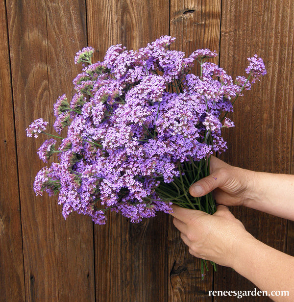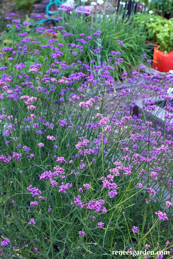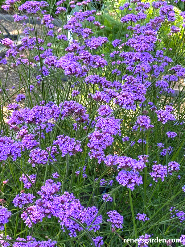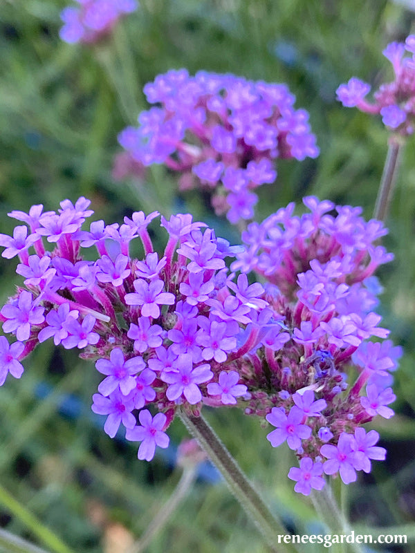 Vanity is a new compact cultivar of a perennial favorite wildflower, offering brilliant color, a long flowering season and constant pollinator visits especially from summer butterflies. This award-winning variety has an open habit with gorgeous, intense purple-blue clusters atop branching thin, wiry stems. With its garden friendly compact size of 2-2 1/2 feet, Vanity is the most versatile Verbena bonariensis; plant in borders, or in containers for a patio or terrace. Its eye-catching, vivid blossoms make fabulous color accents in mixed bouquets.