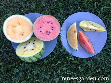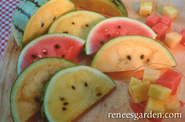 EXCLUSIVE - Grow three varieties of early maturing “icebox” watermelons with delicious pastel yellow, orange or pink flesh. These extra fancy beauties weigh in at only 4 to 7 pounds with thin, green striped rinds and dense, crisp flesh. Their party colors and refreshing sweet, sherbet-like taste make them wonderful everyday treats or gorgeous summer desserts.